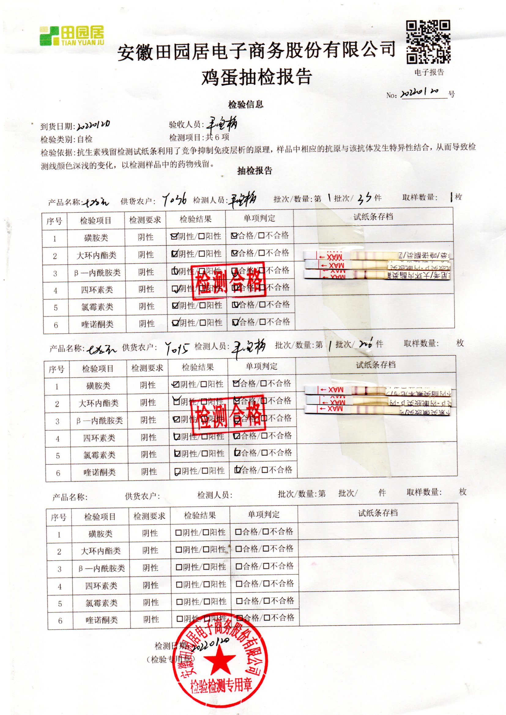 2022年01月20號鮮雞蛋檢測報告