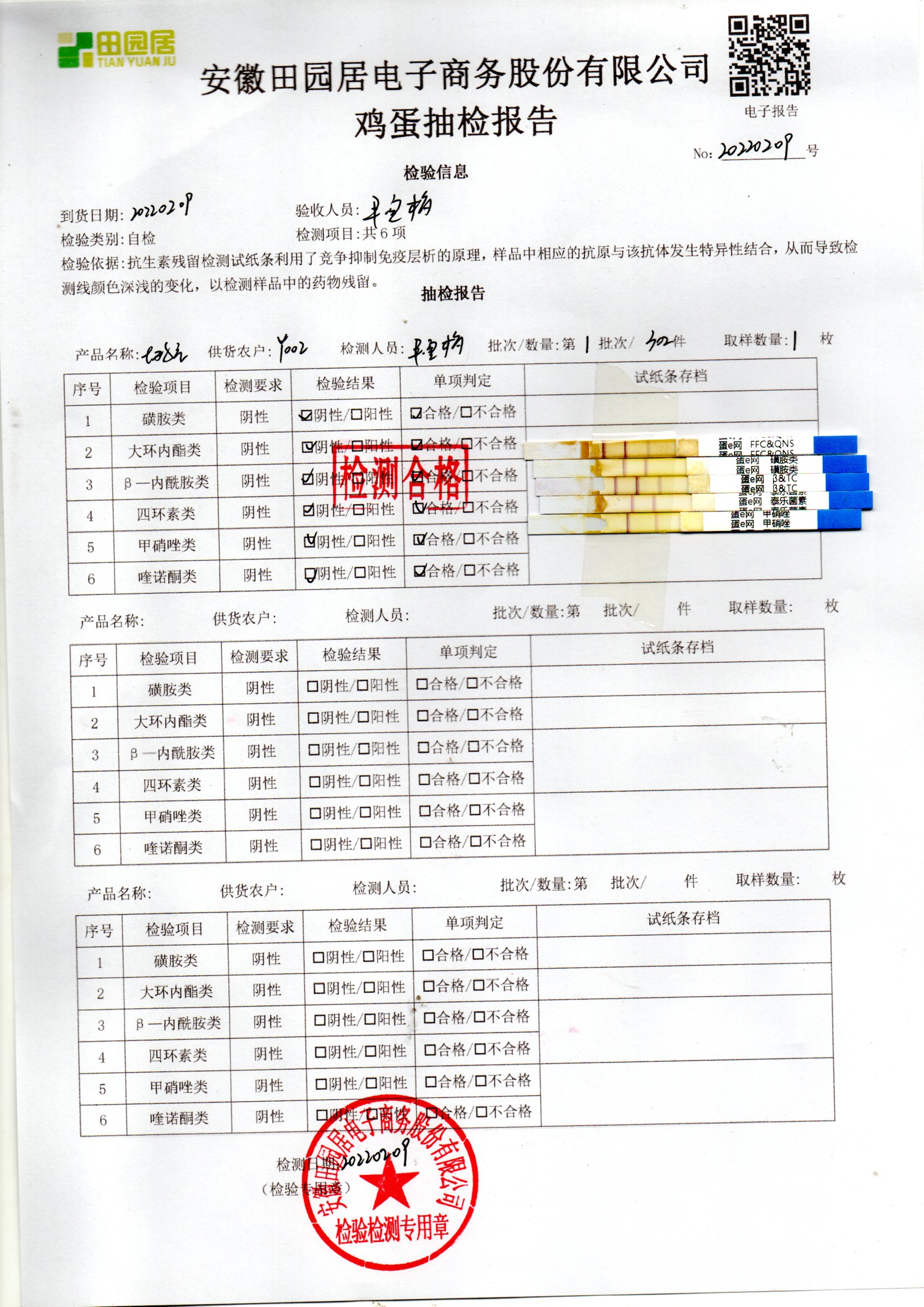 2022年02月11號鮮雞蛋檢測報告