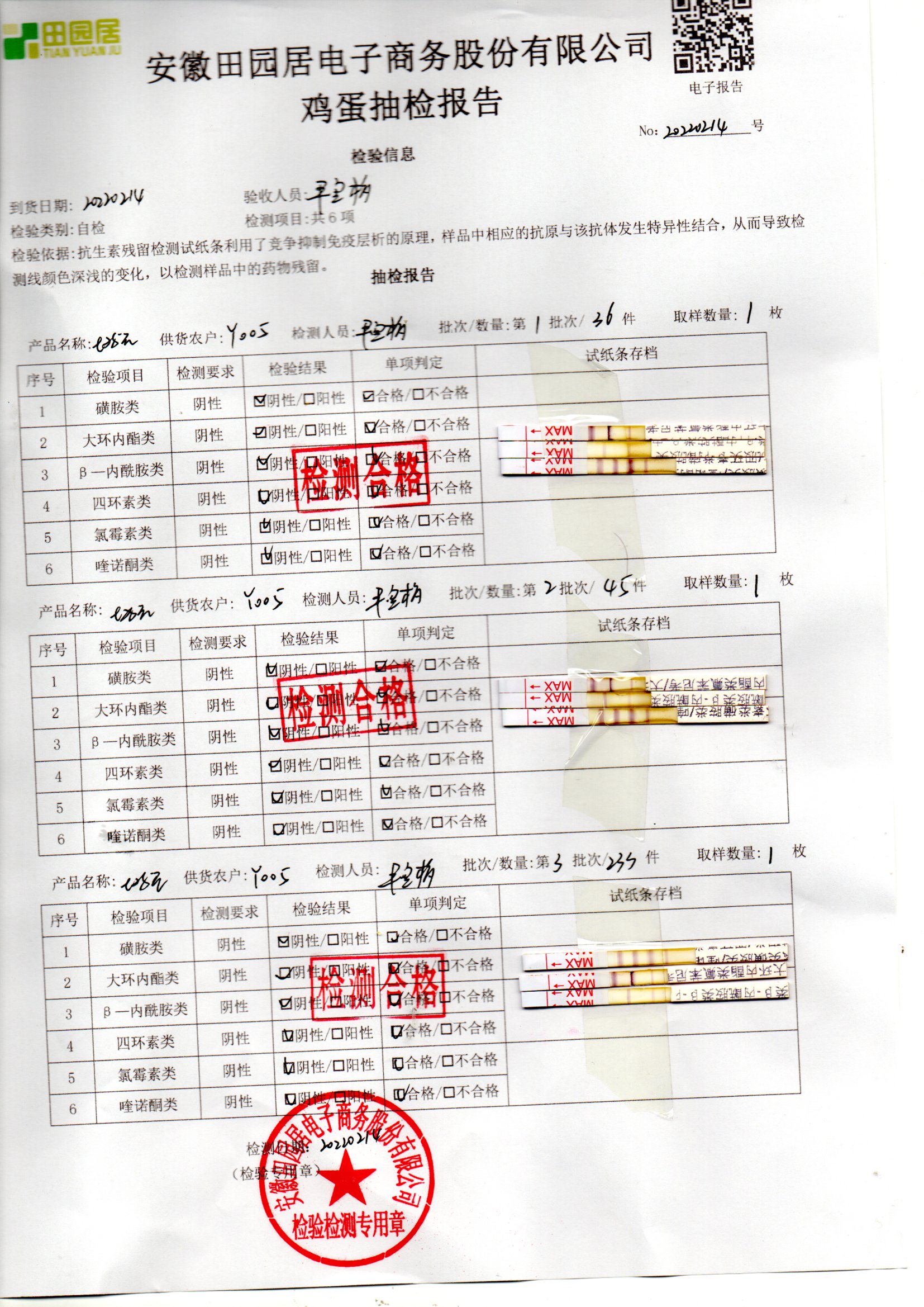 2022年02月14號鮮雞蛋檢測報告