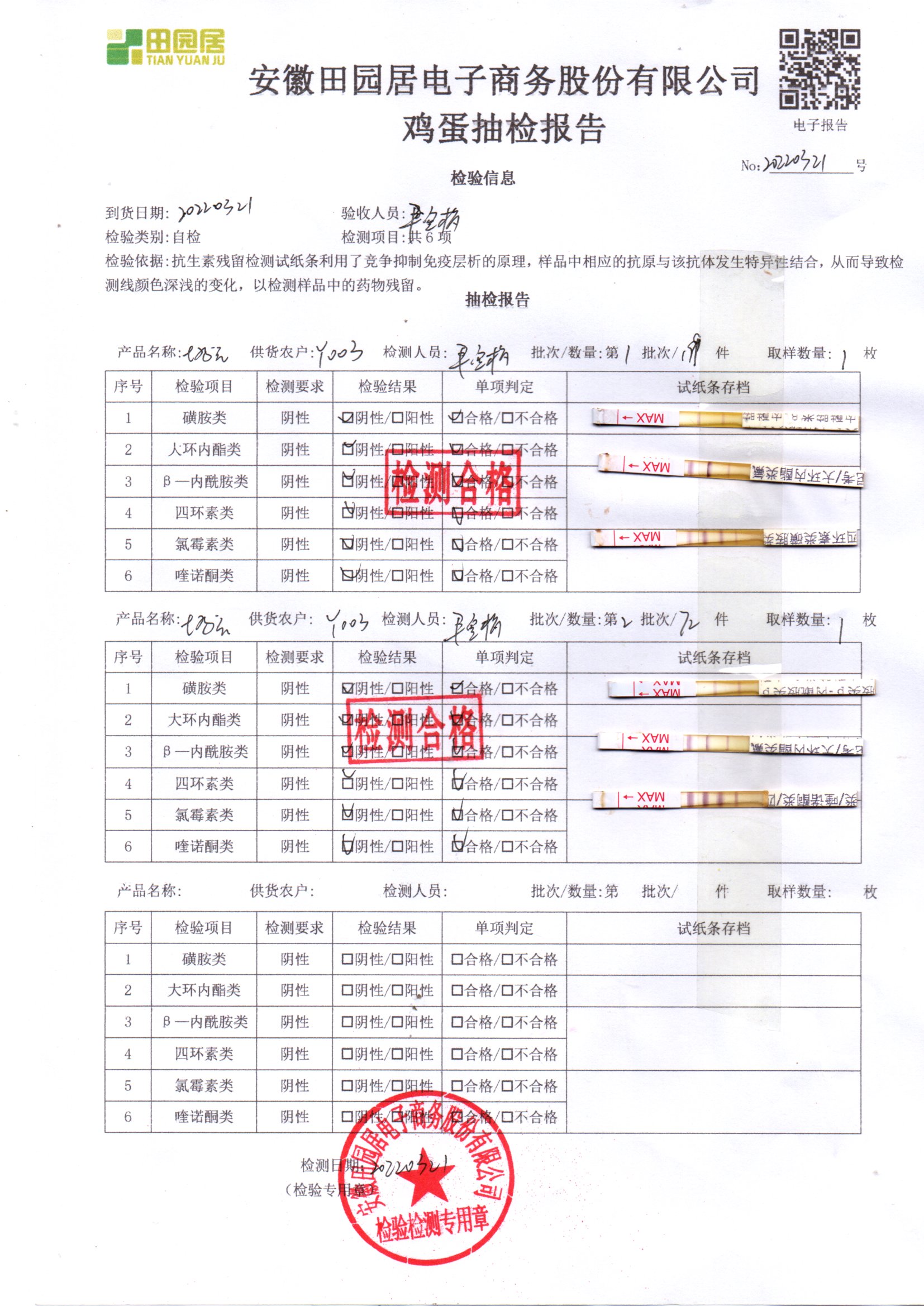 2022年03月21號鮮雞蛋檢測報告