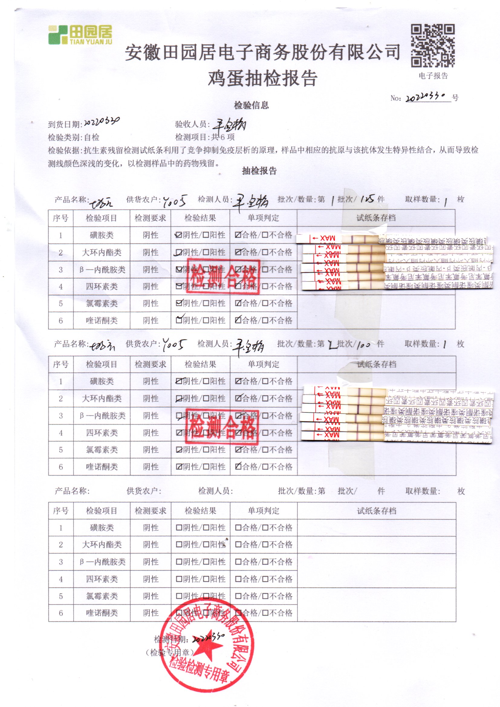 2022年03月30號鮮雞蛋檢測報告