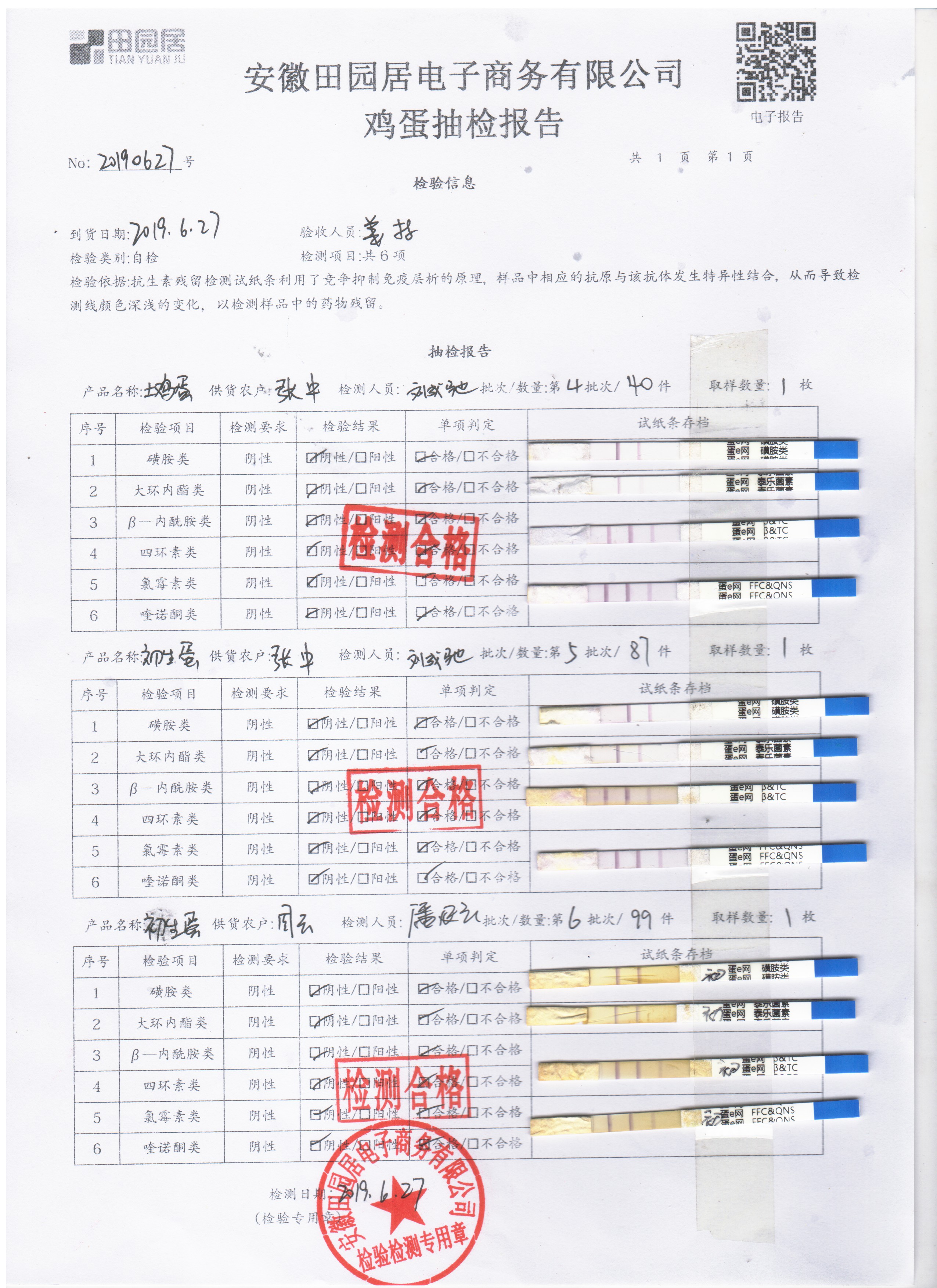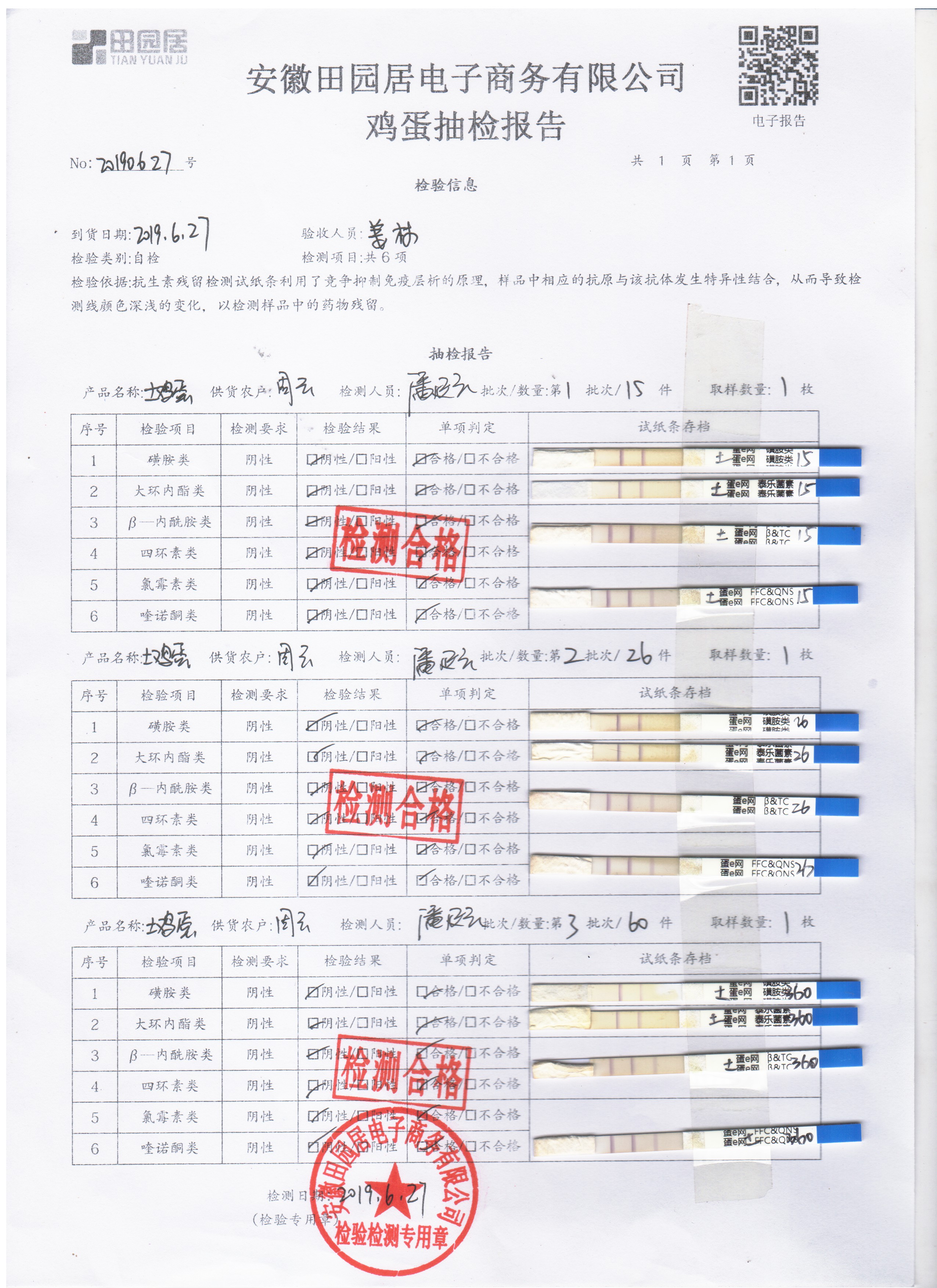 2019年6月27日雞蛋自檢報告