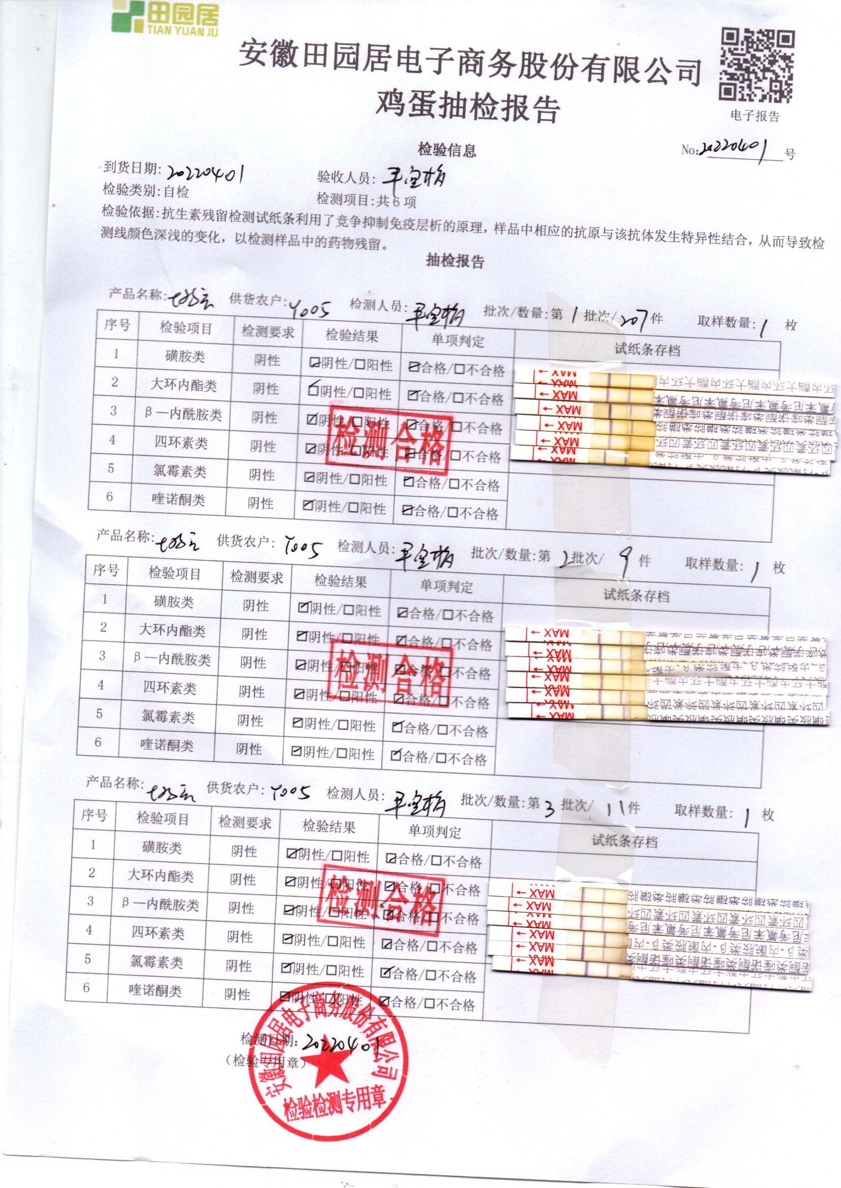 2022年04月01號鮮雞蛋檢測報告
