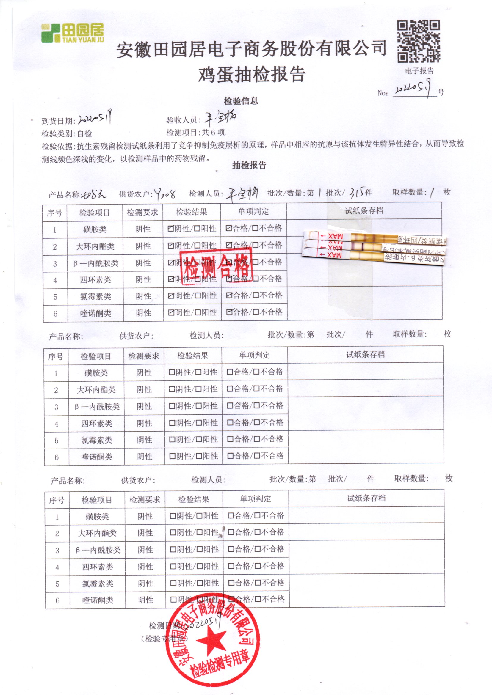 2022年05月16號鮮雞蛋檢測報告