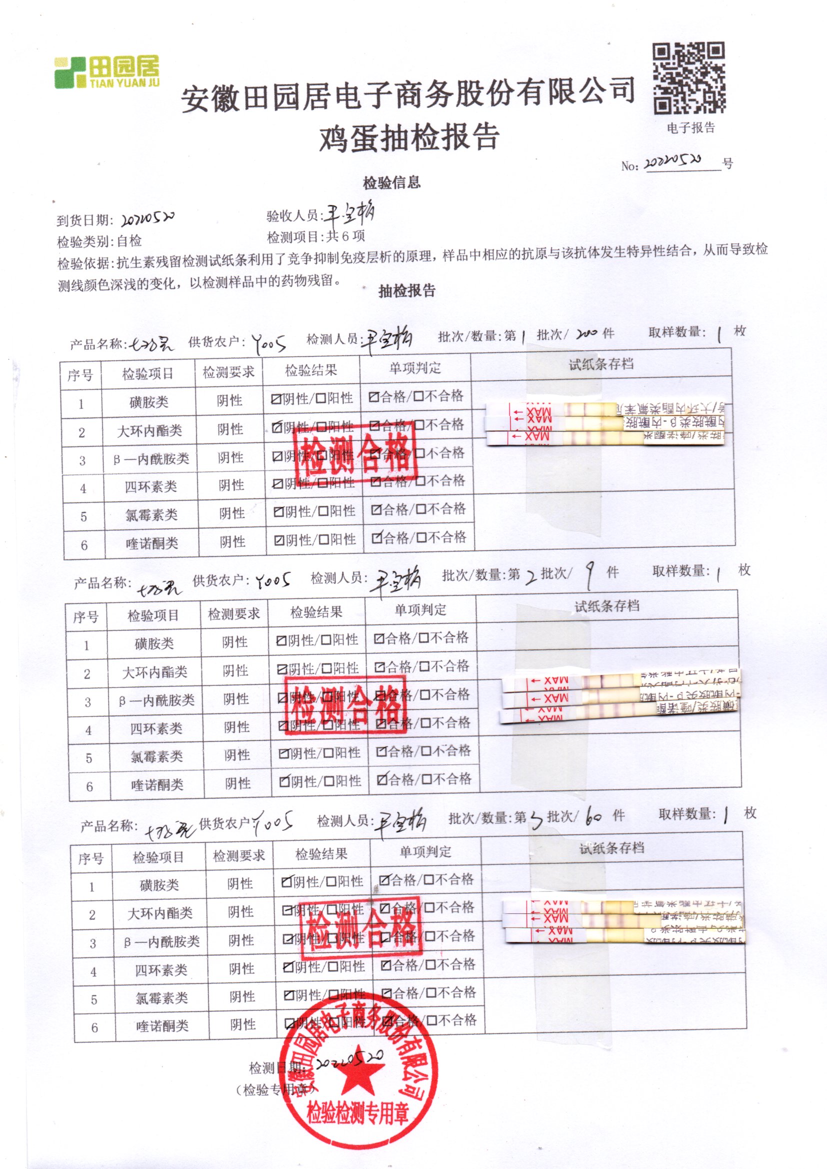 2022年05月20號鮮雞蛋檢測報告
