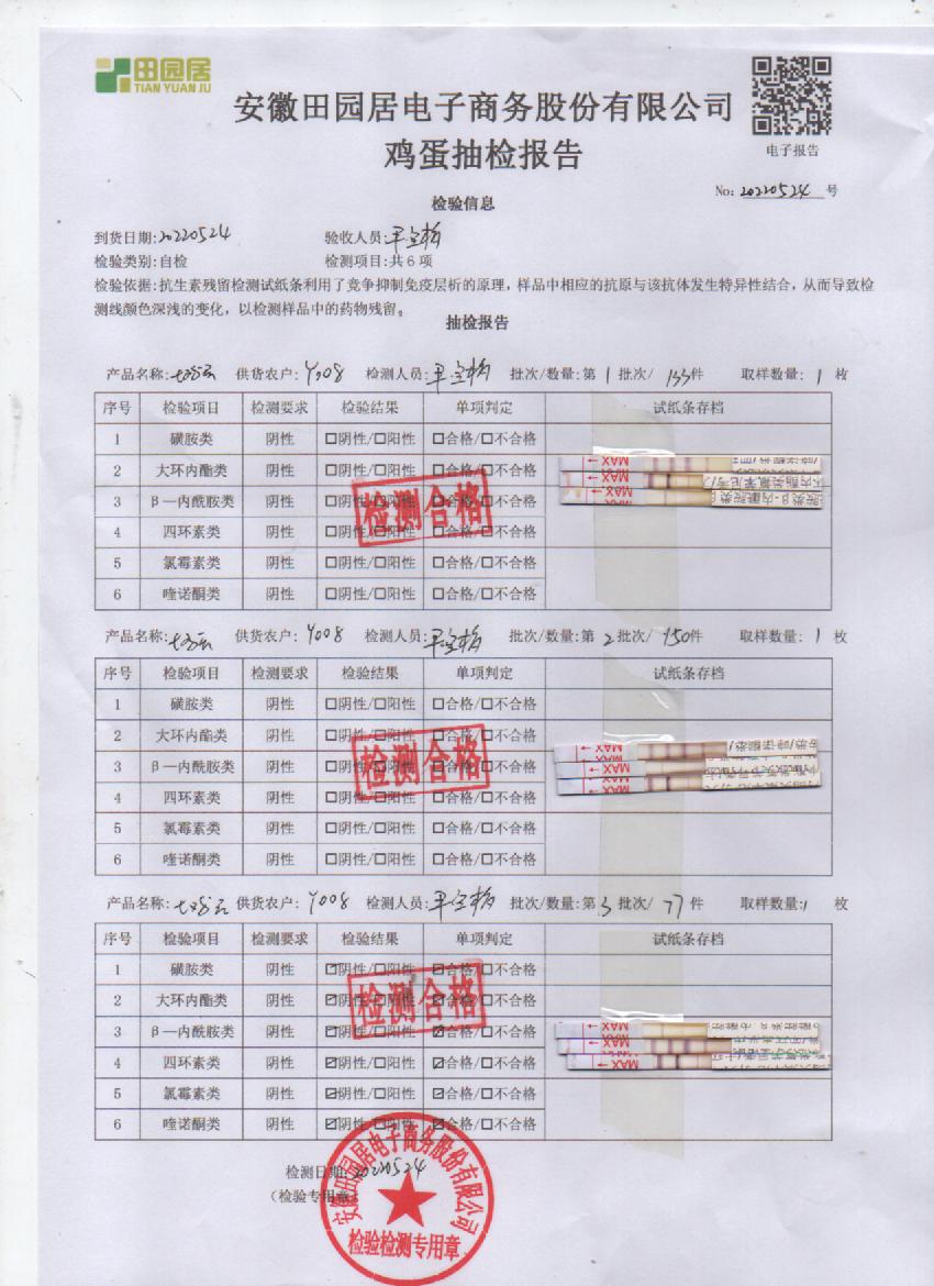 2022年5月24號鮮雞蛋檢測報告