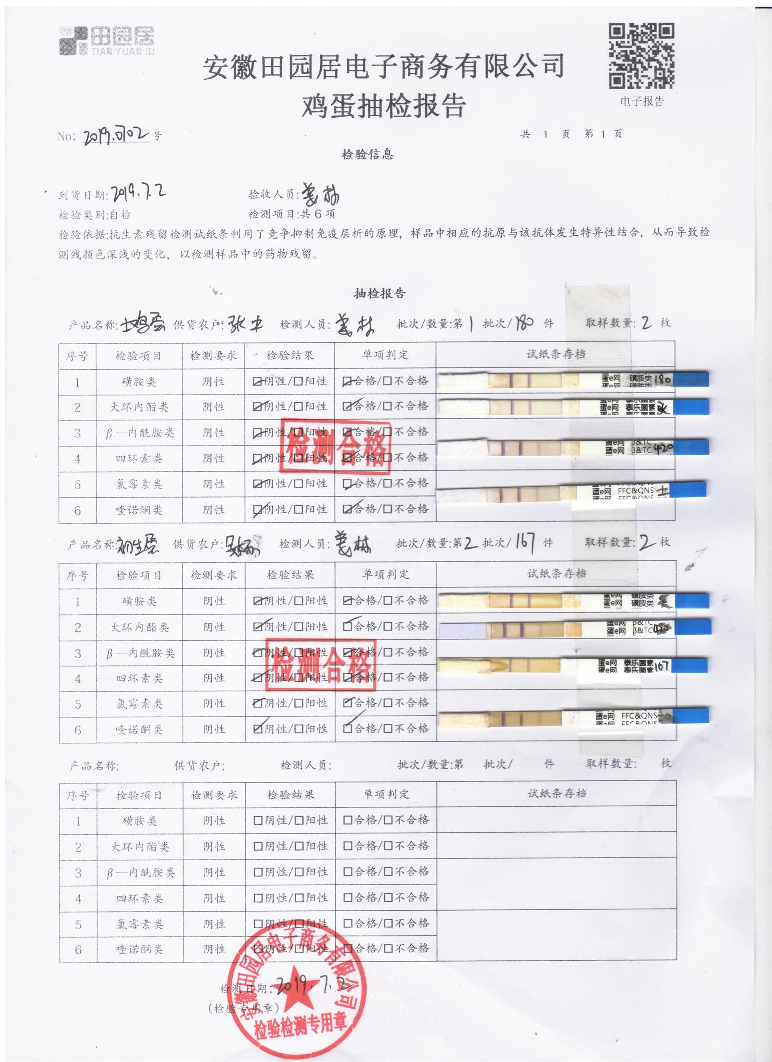 2019年7月2日雞蛋自檢報告
