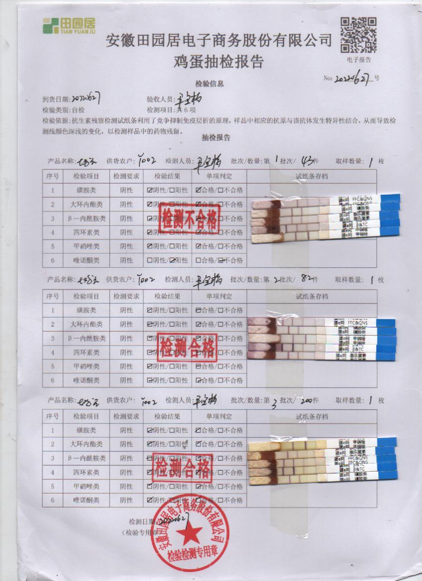 2022年6月27號鮮雞蛋檢測報告
