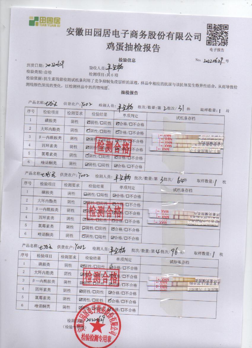 2022年6月29號鮮雞蛋檢測報告