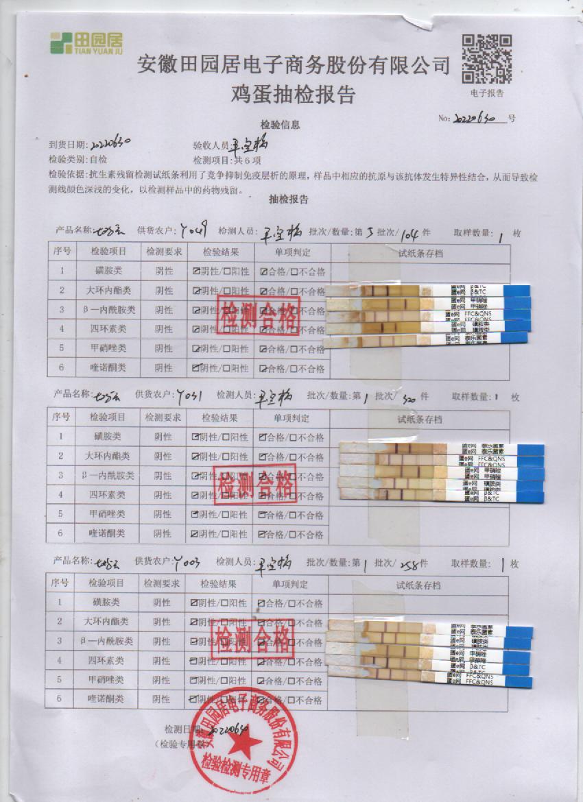 2022年6月30號鮮雞蛋檢測報告