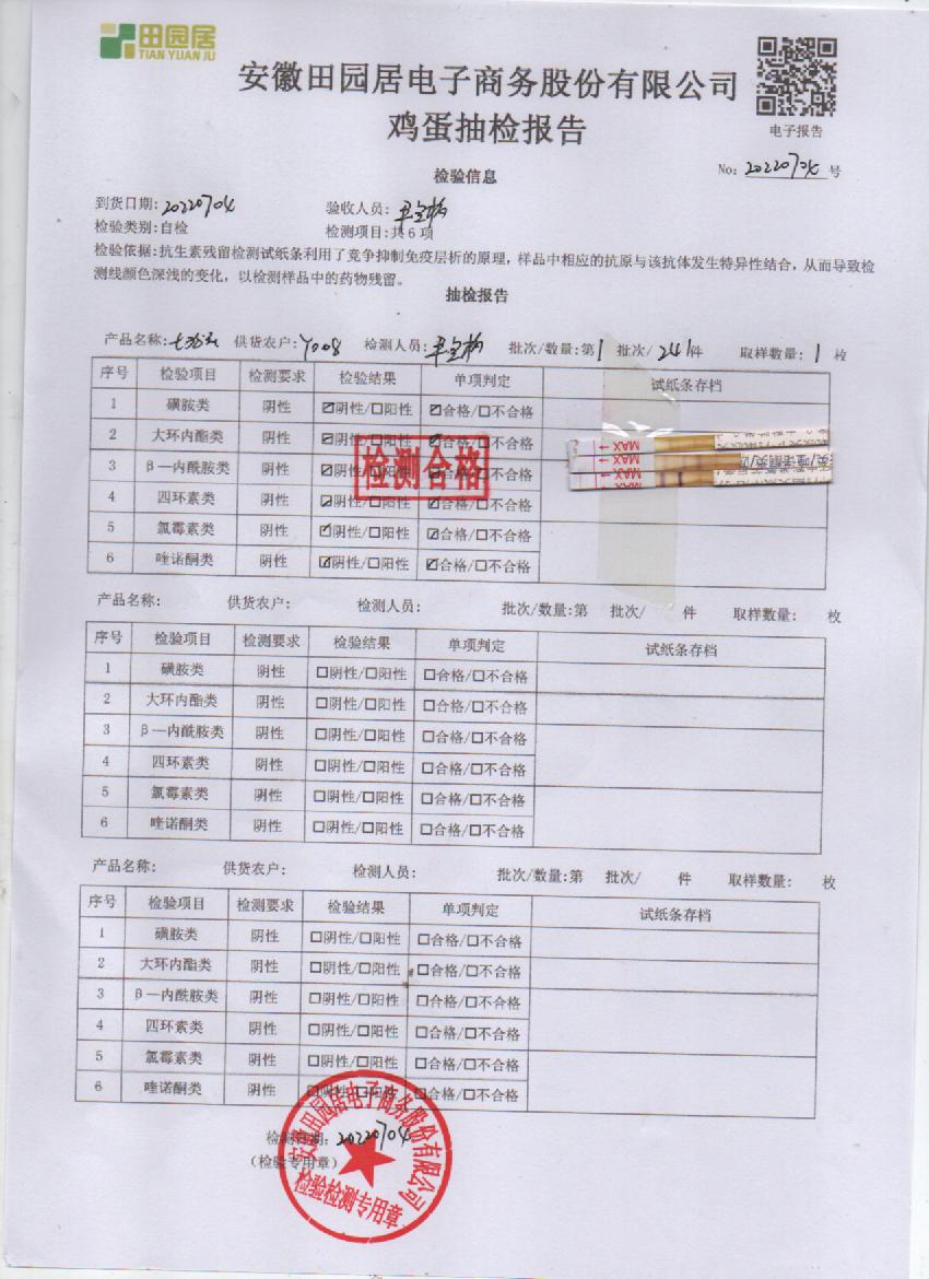 2022年7月04號鮮雞蛋檢測報告