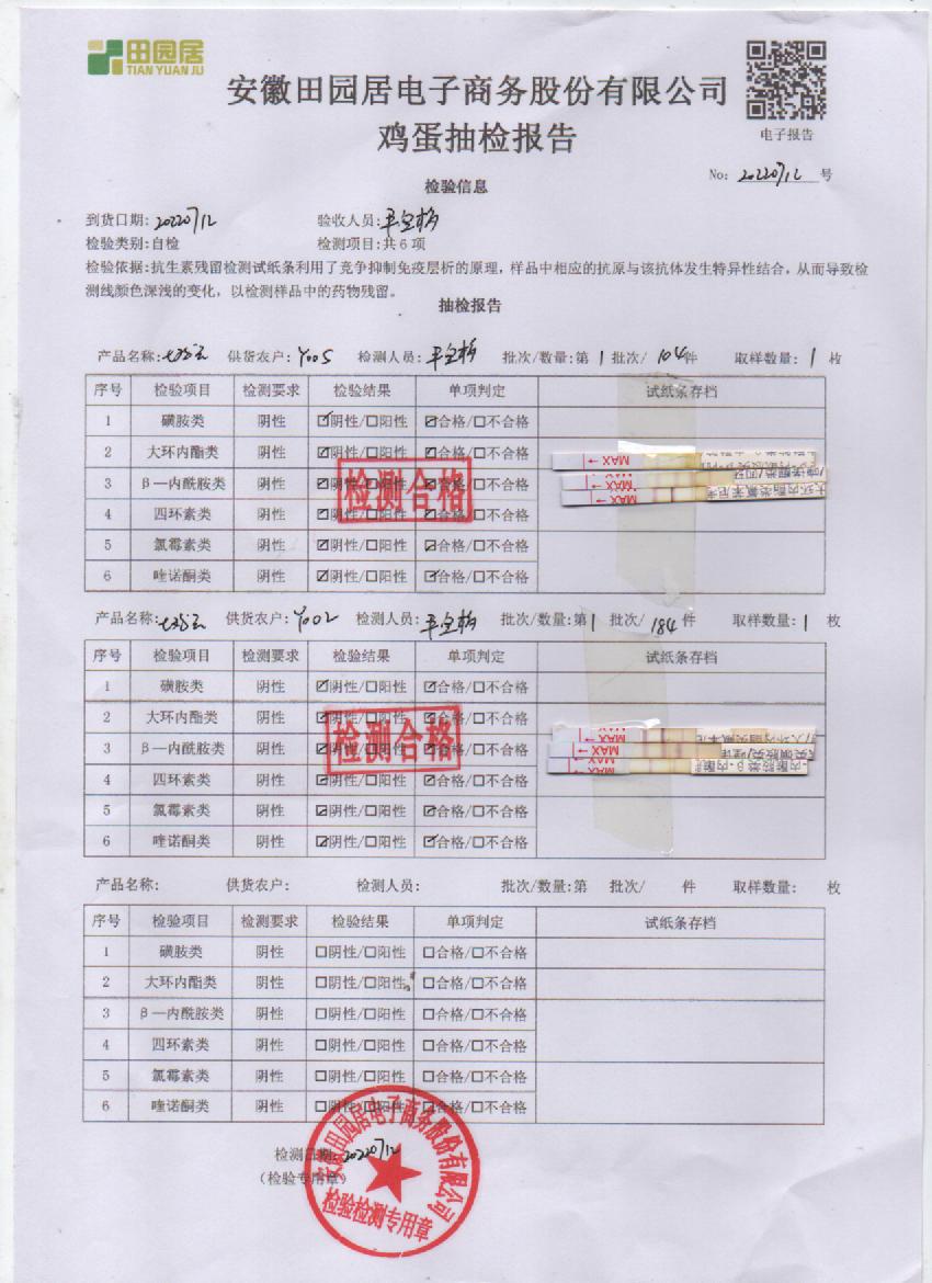 2022年7月7號鮮雞蛋檢測報告