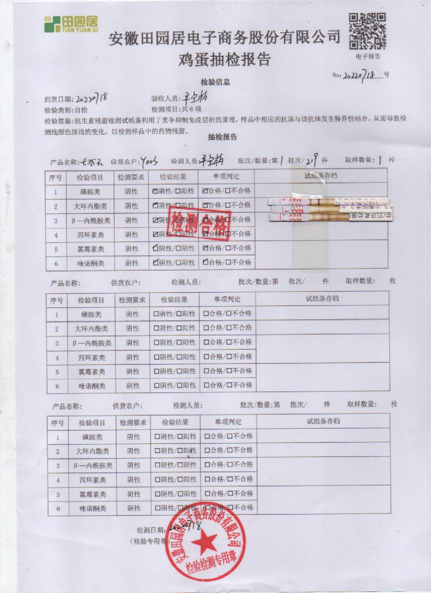 2022年7月18號鮮雞蛋檢測報告