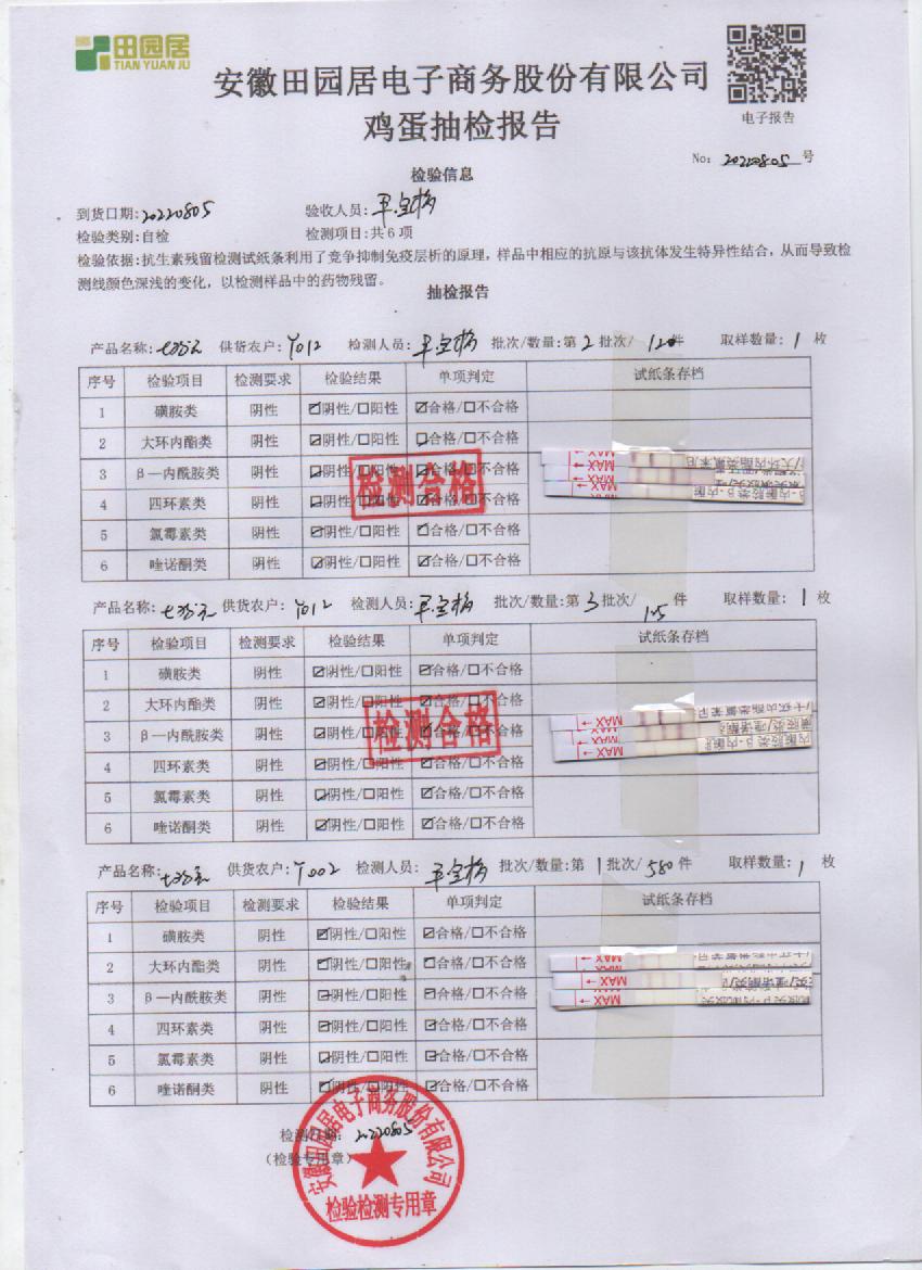 2022年8月8號鮮雞蛋檢測報告