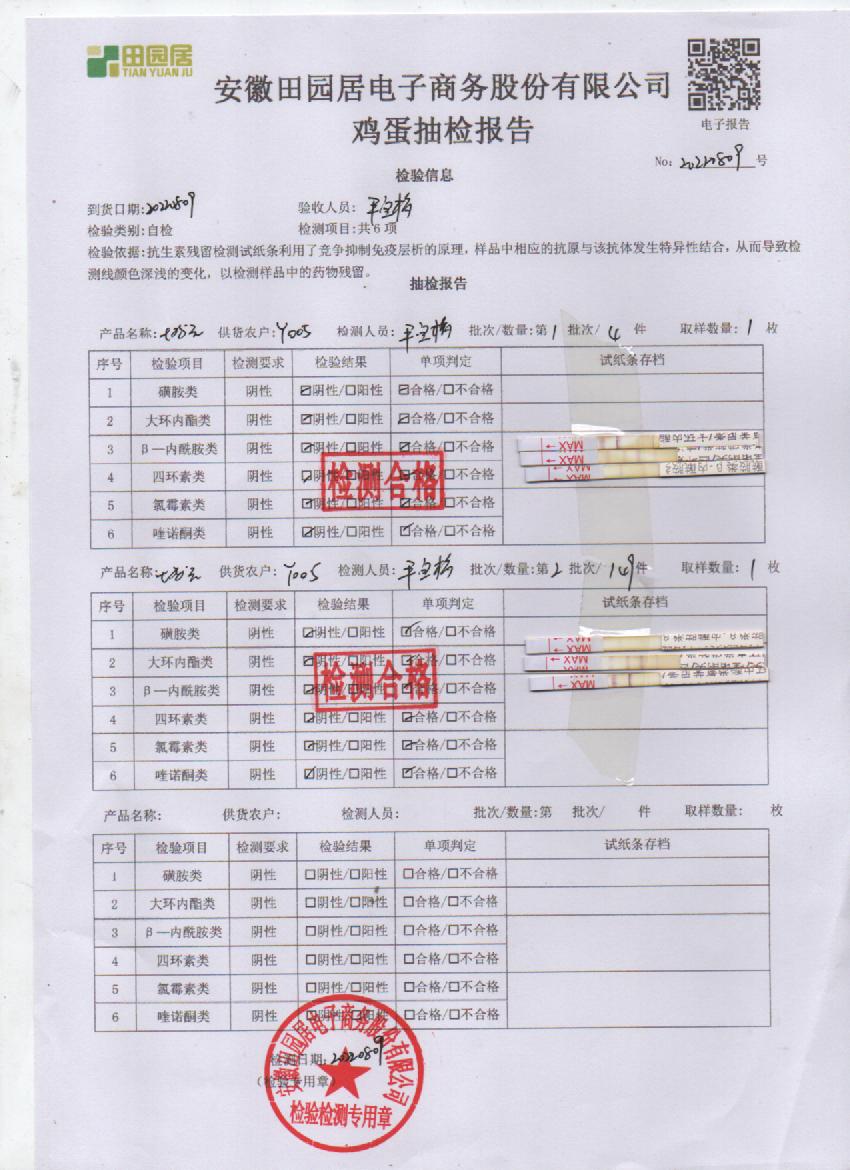 2022年8月7號鮮雞蛋檢測報告