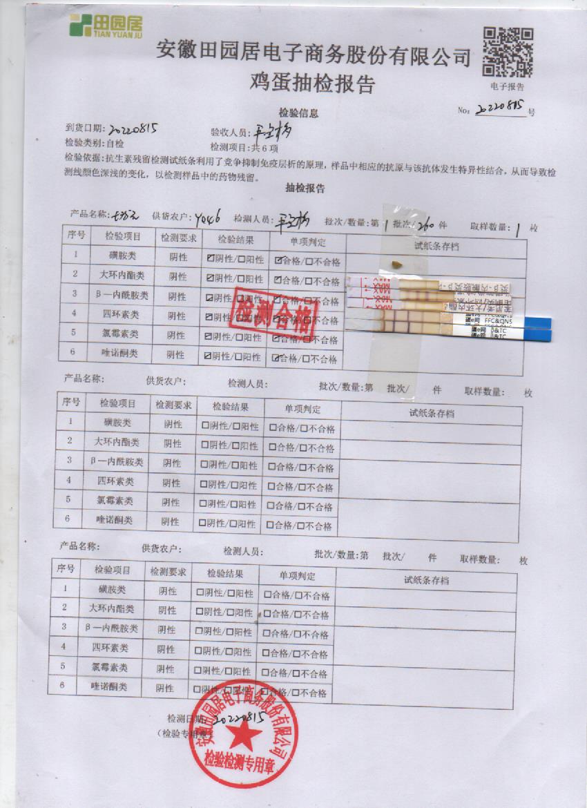 2022年8月15號鮮雞蛋檢測報告
