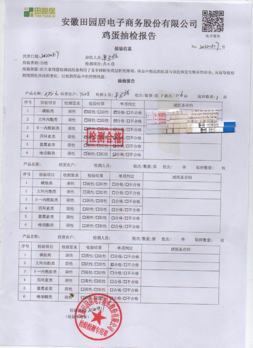 2022年8月17號鮮雞蛋檢測報告