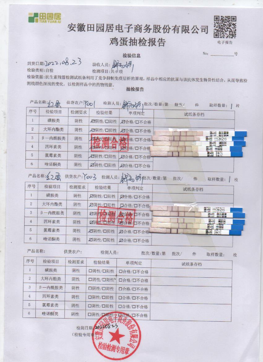 2022年8月23號鮮雞蛋檢測報告