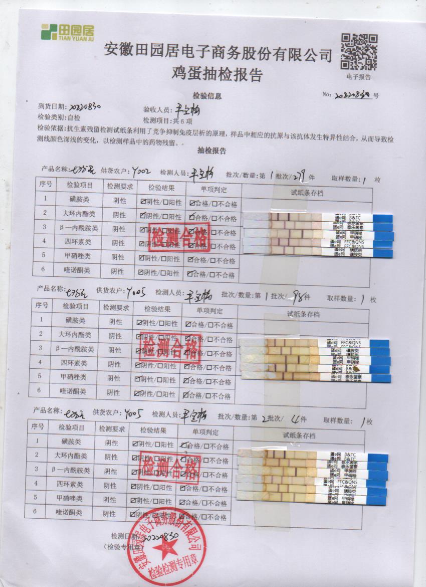 2022年8月30號鮮雞蛋檢測報告