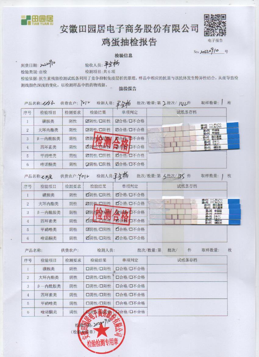 2022年09月10號鮮雞蛋檢測報告