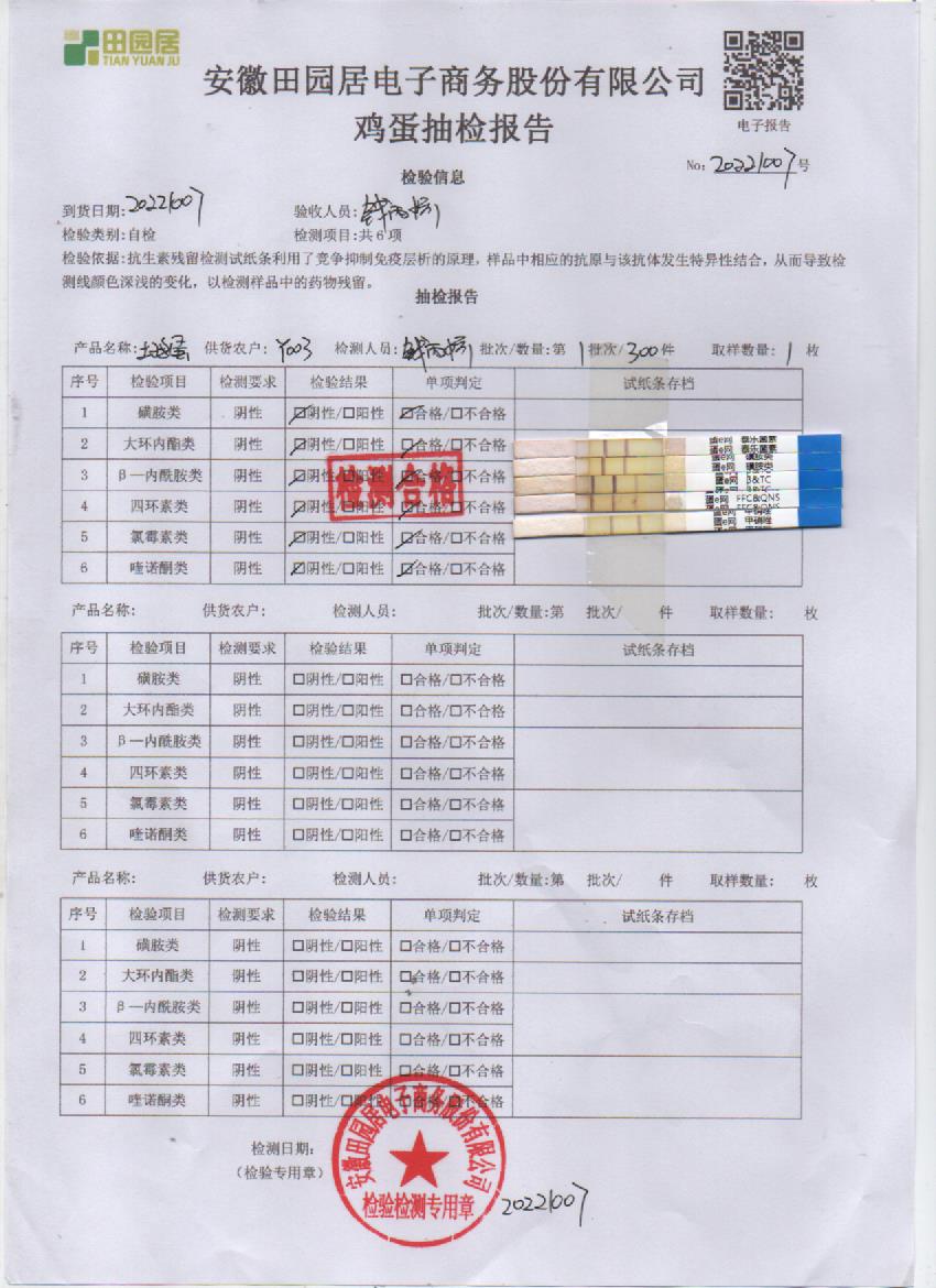 2022年10月07號鮮雞蛋檢測報告