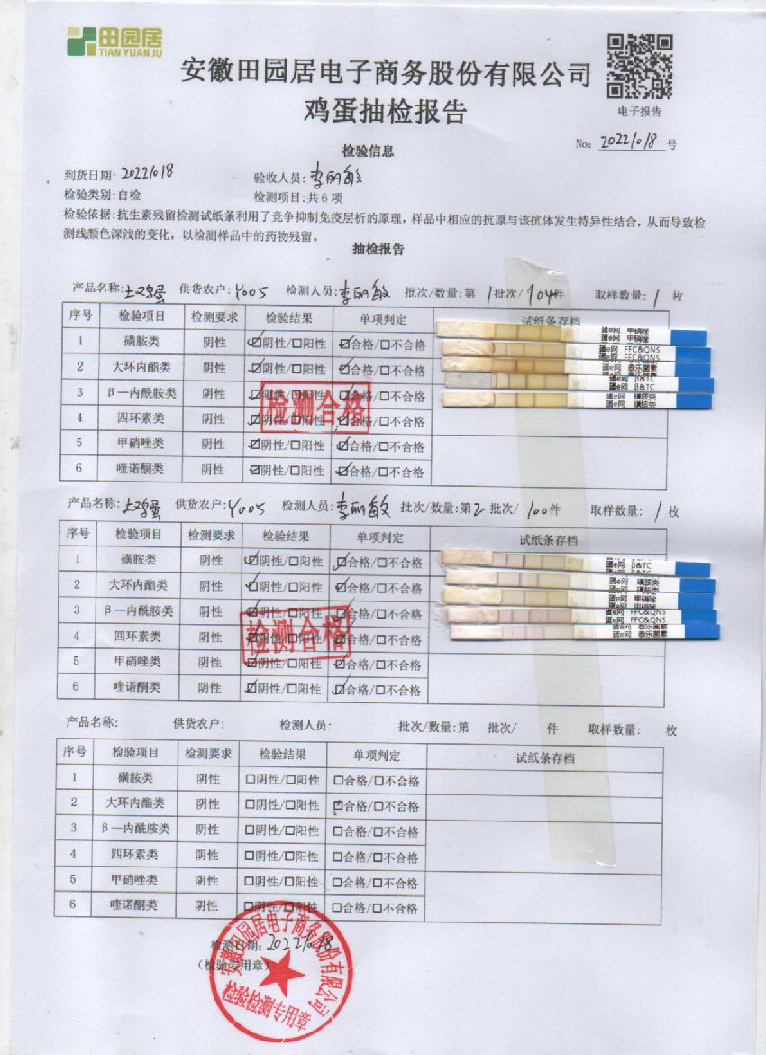 2022年10月18號鮮雞蛋檢測報告