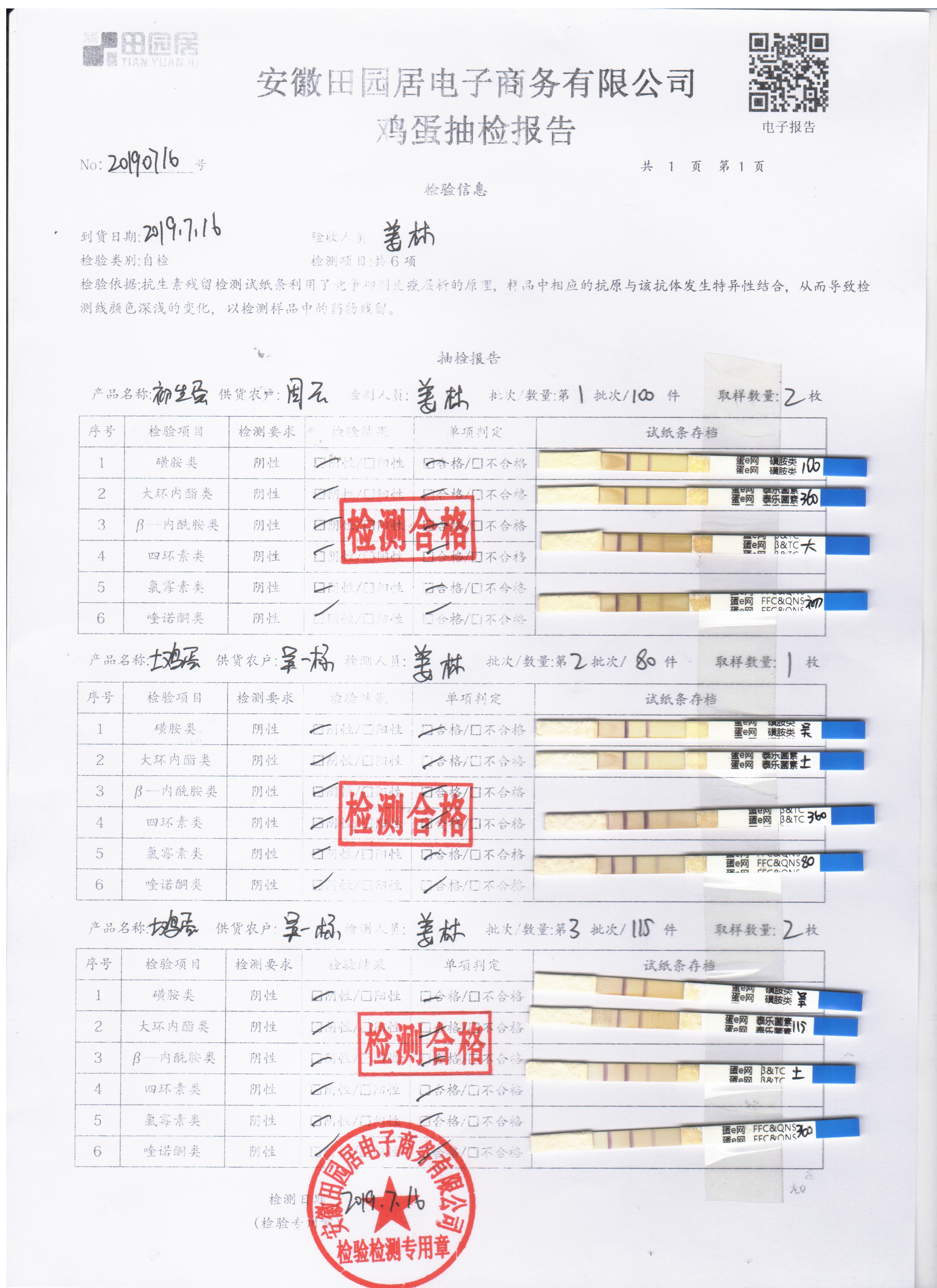 2019年7月16日雞蛋自檢報告