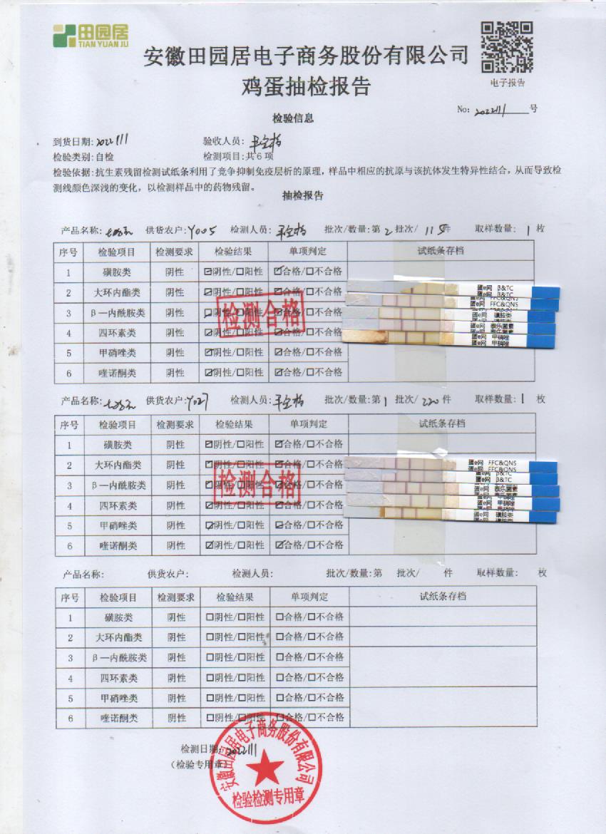 2022年11月01號鮮雞蛋檢測報告