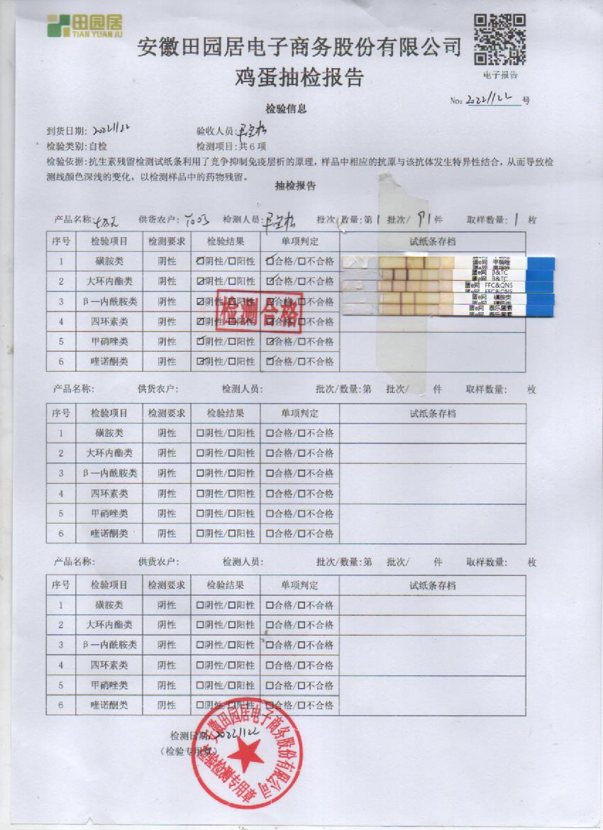 2022年11月22號鮮雞蛋檢測報告