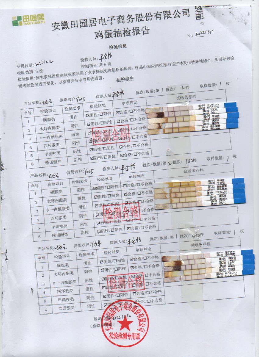 2022年12月12號鮮雞蛋檢測報告