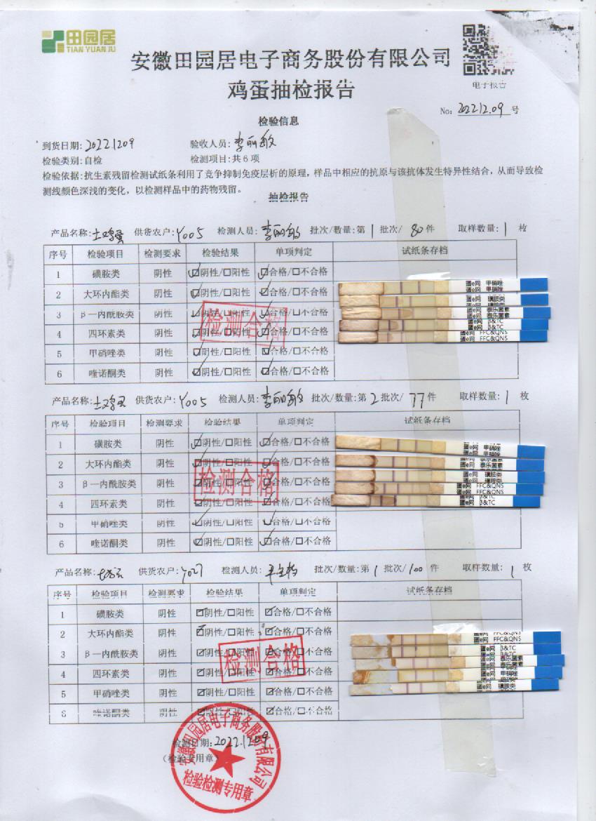 2022年12月09號鮮雞蛋檢測報告
