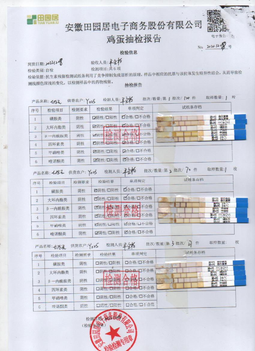 2022年12月08號鮮雞蛋檢測報告