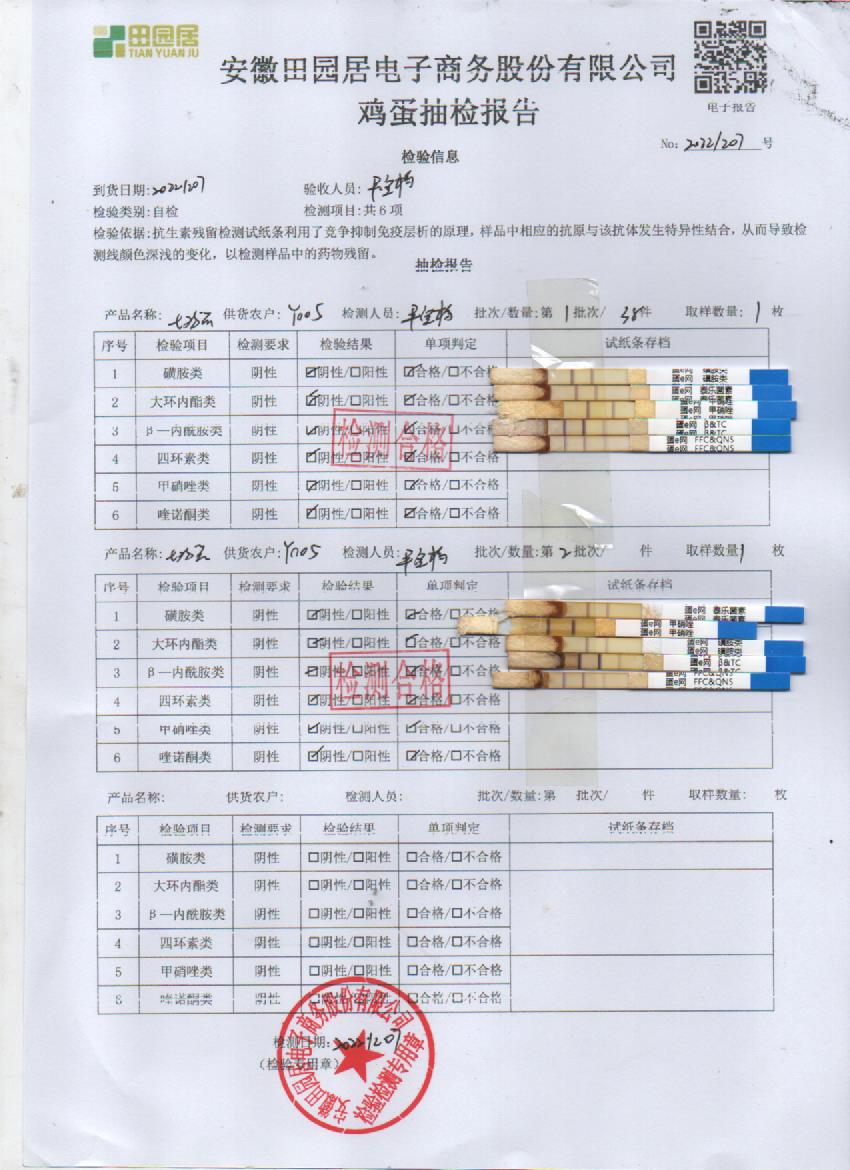 2022年12月07號鮮雞蛋檢測報告