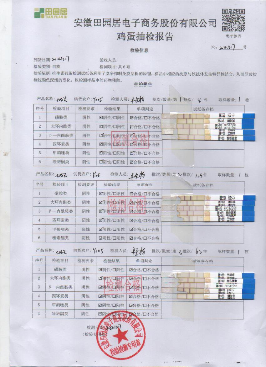 2022年12月21號鮮雞蛋檢測報告