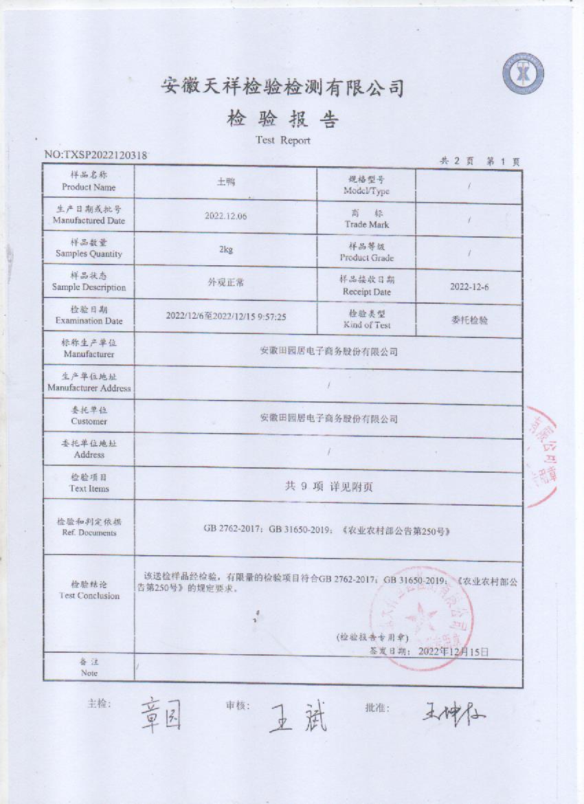 2022年12月03號土鴨檢測報告