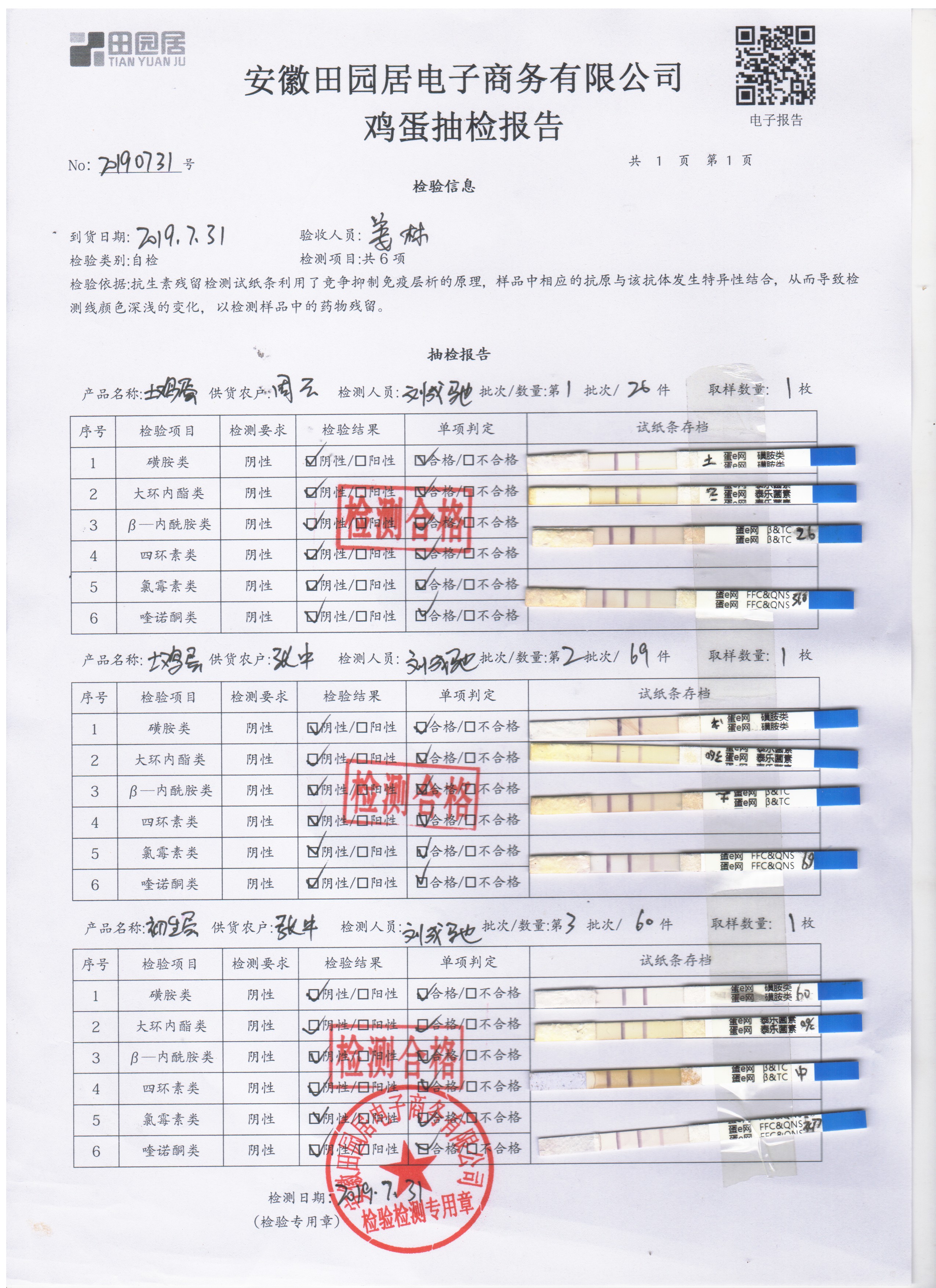 2019年7月31日雞蛋自檢報告