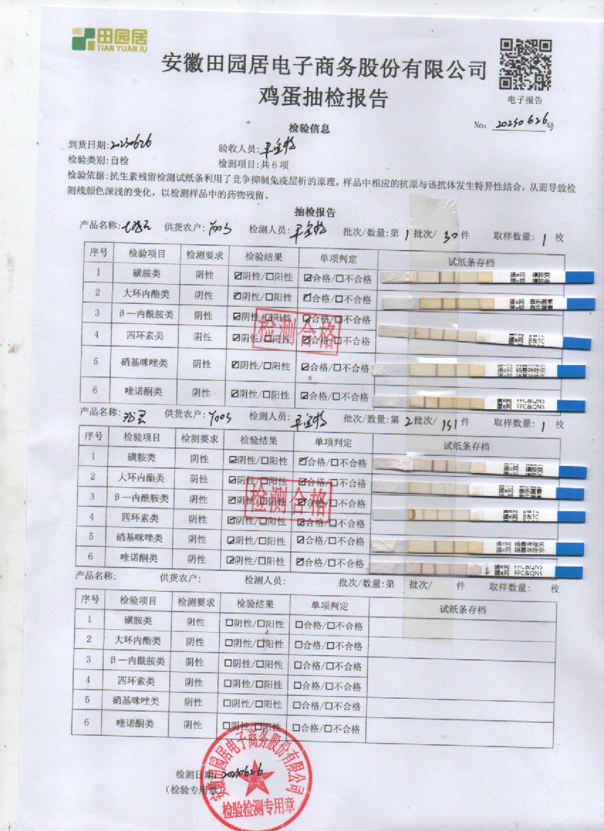 2023年06月26號鮮雞蛋檢測報告