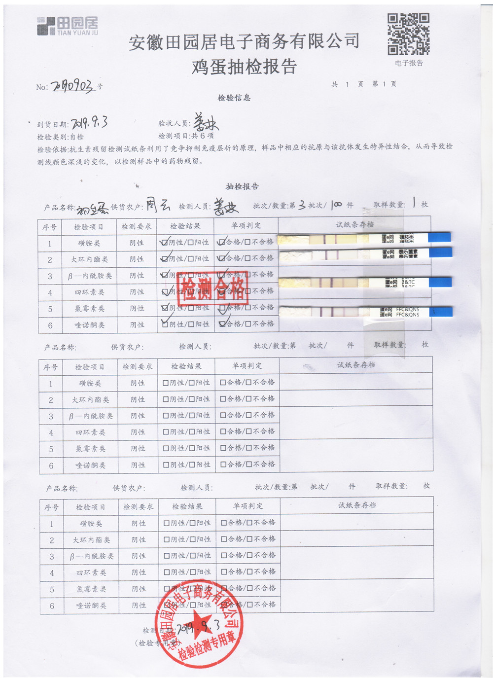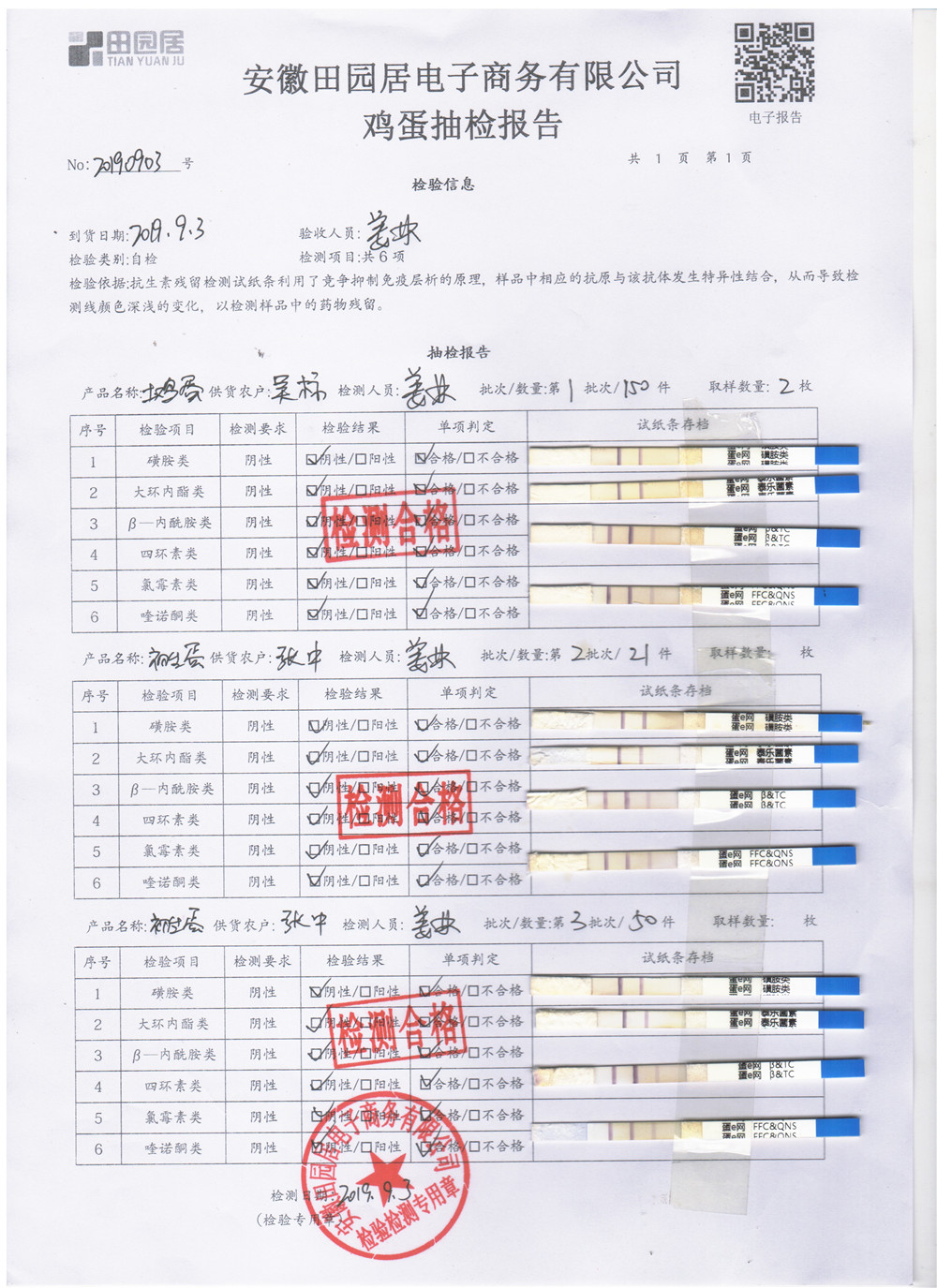 2019年9月3日雞蛋自檢報告