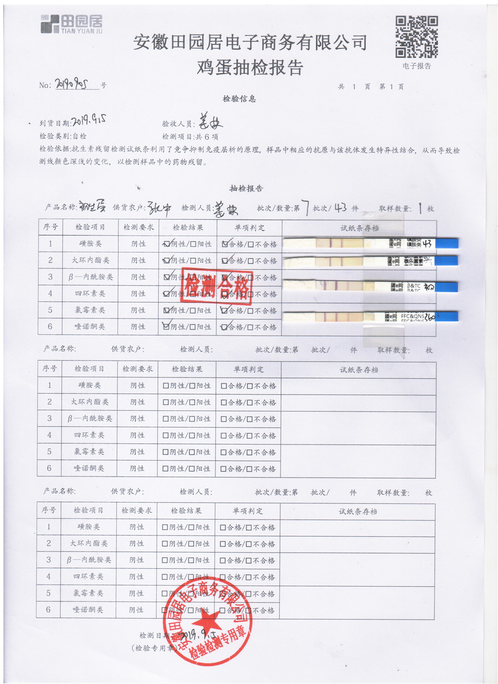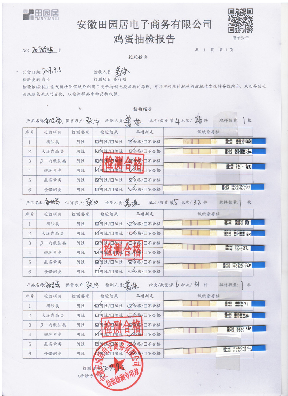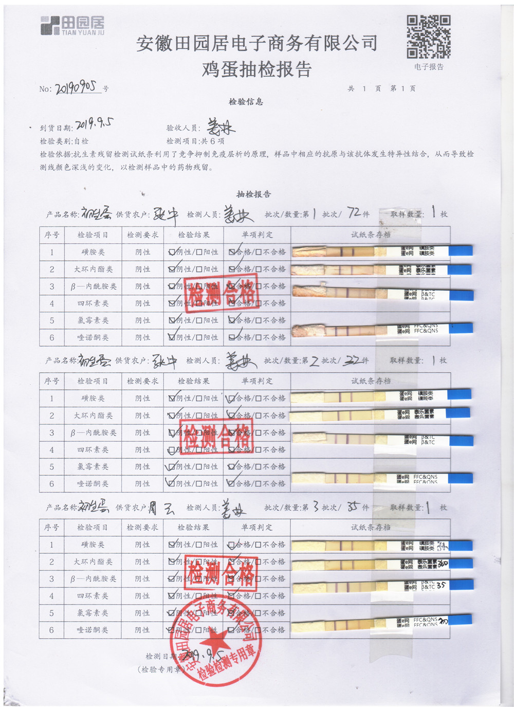 2019年9月5日雞蛋自檢報告