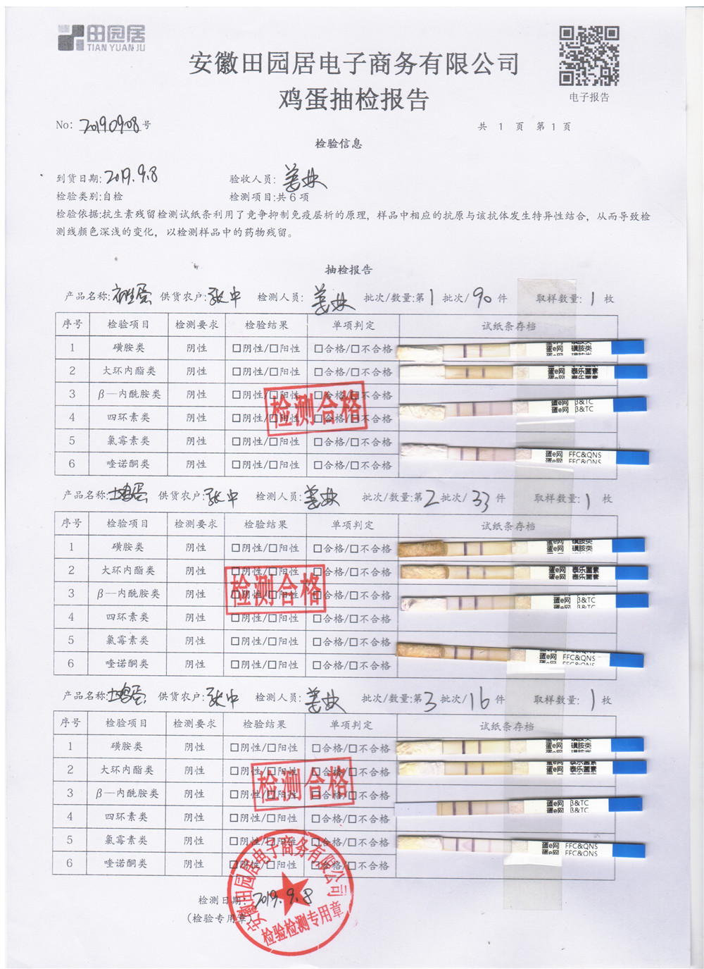 2019年9月8日雞蛋自檢報告