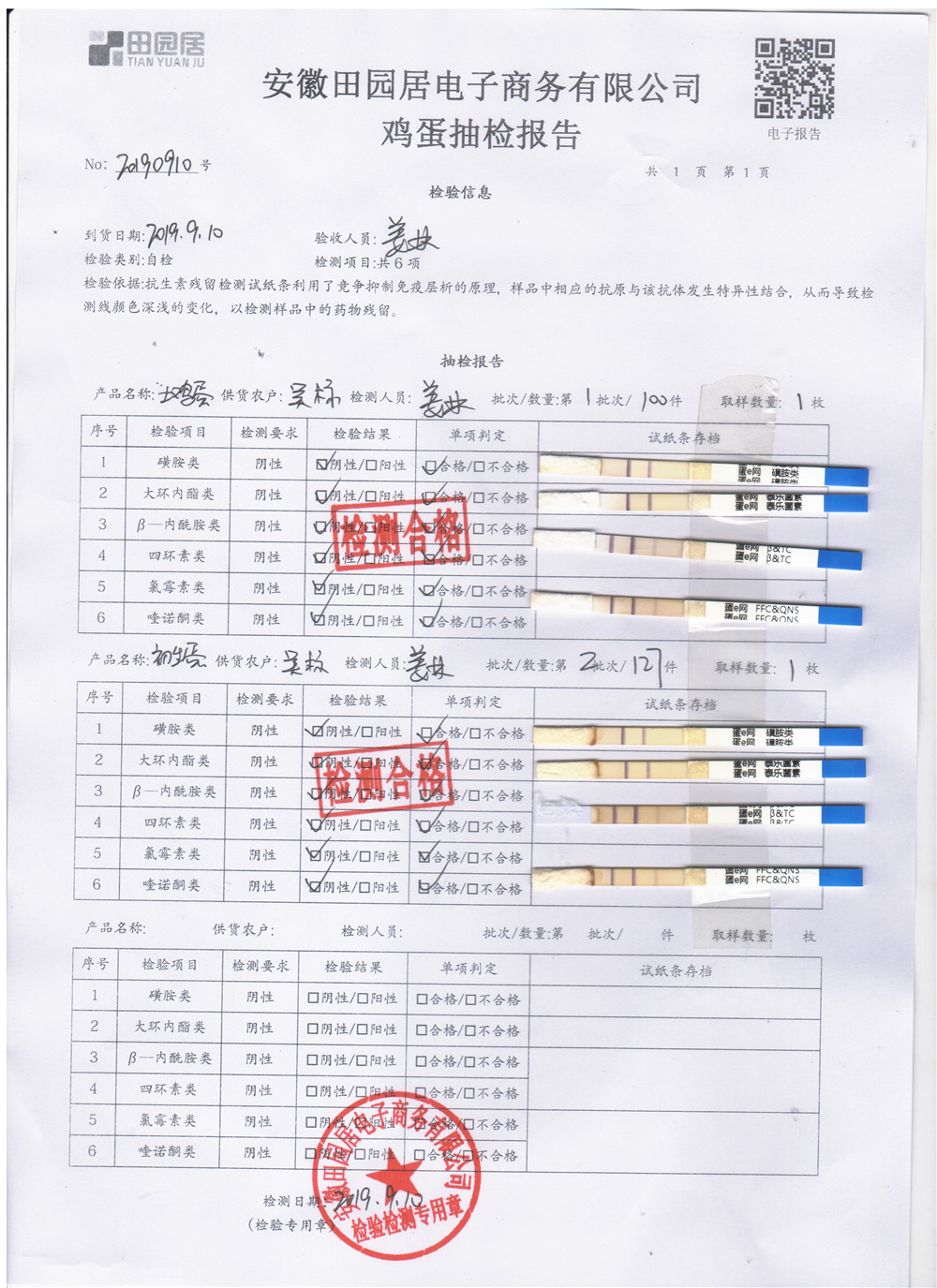 2019年9月10日雞蛋自檢報告