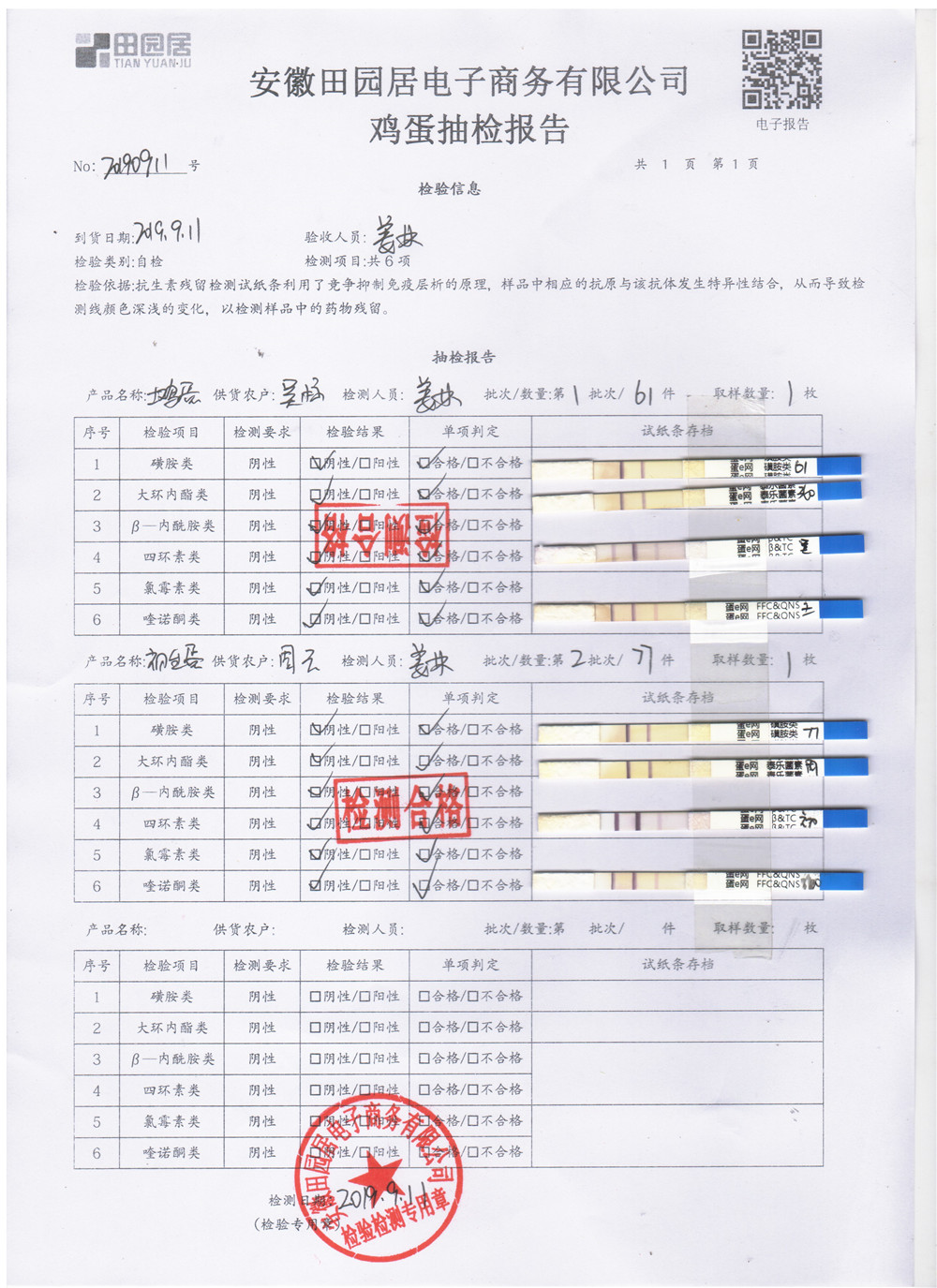 2019年9月11日雞蛋自檢報告
