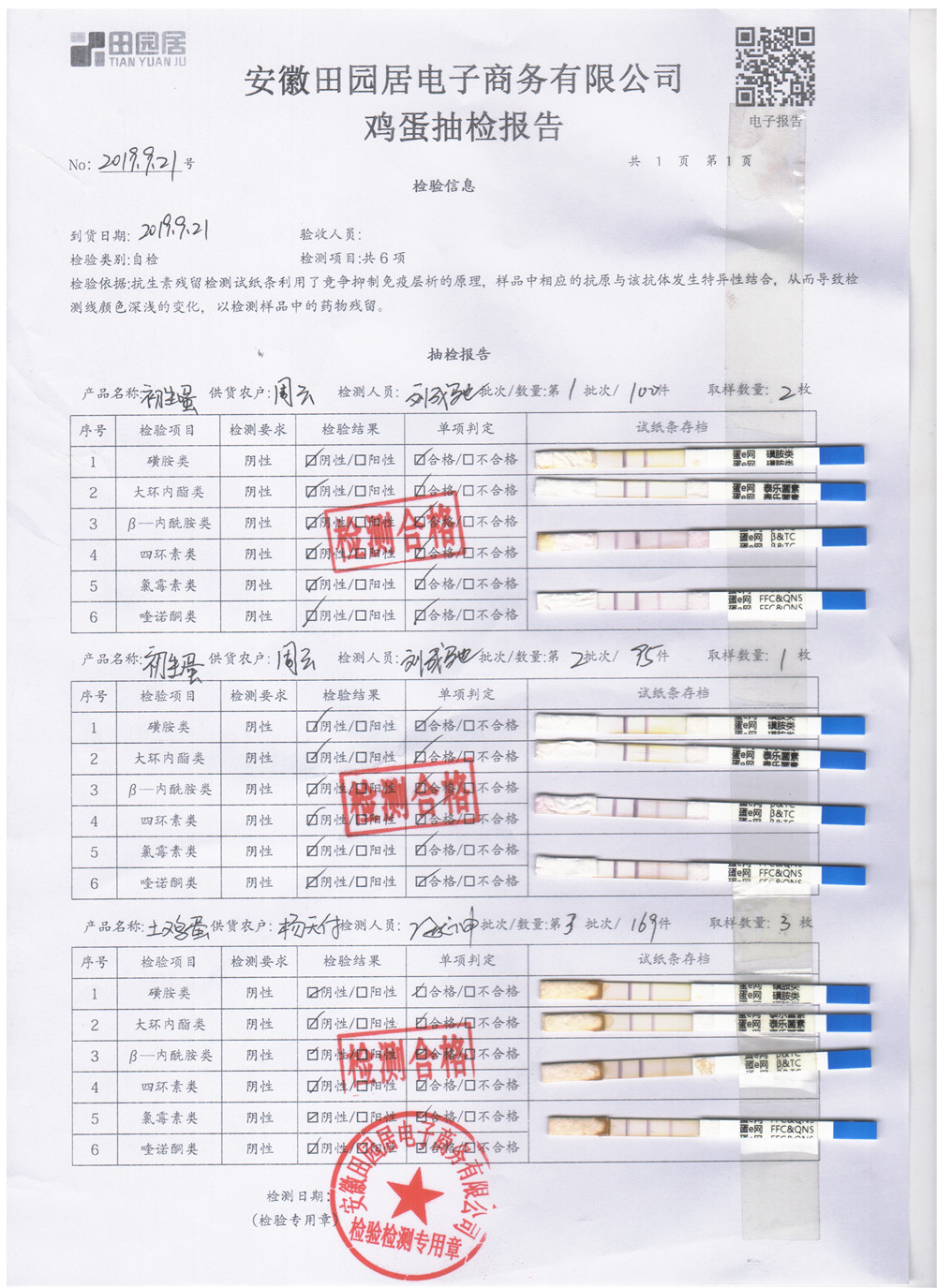 2019年9月21日雞蛋自檢報告
