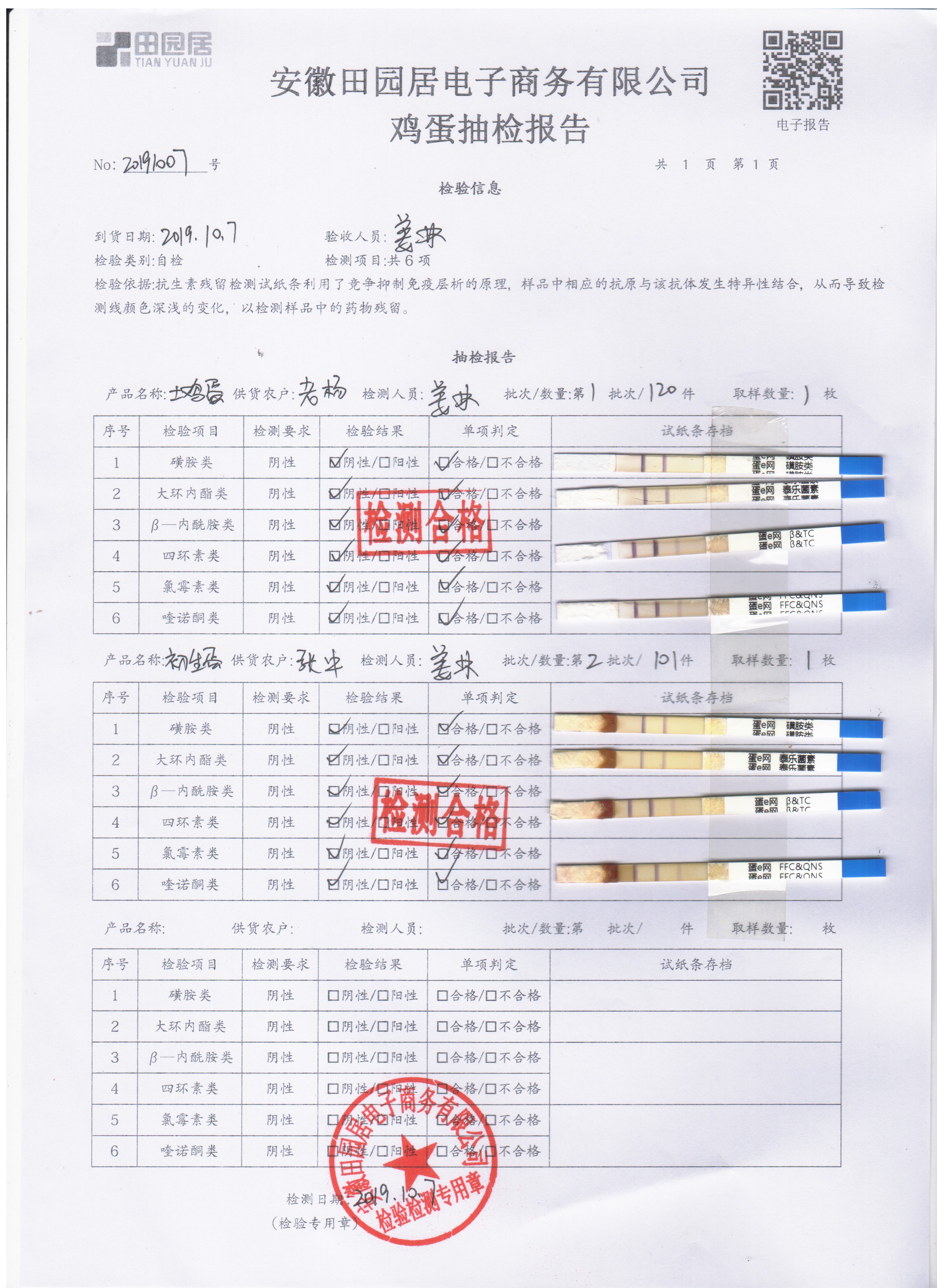2019年10月7日雞蛋自檢報告