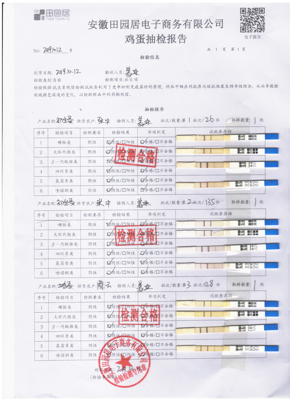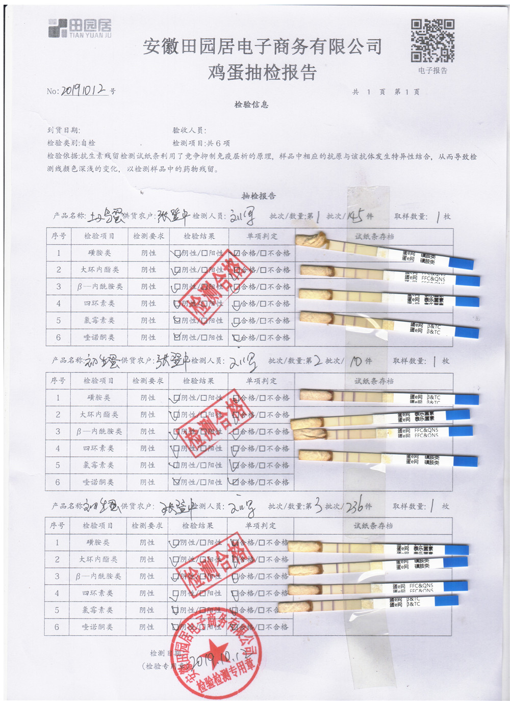 2019年10月12日雞蛋自檢報告