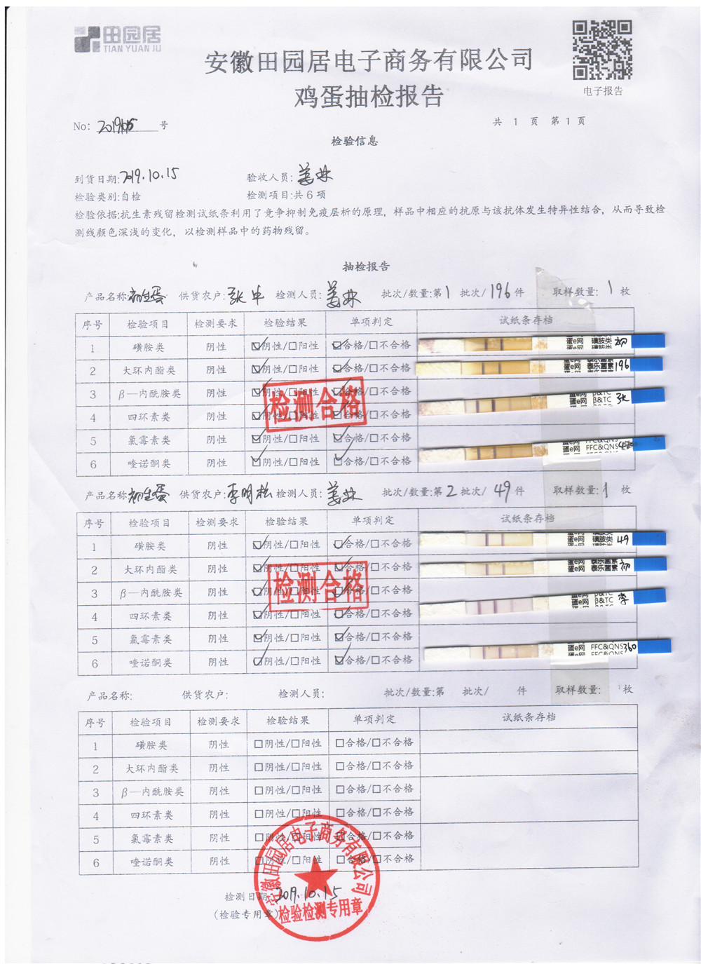 2019年10月15日雞蛋自檢報告