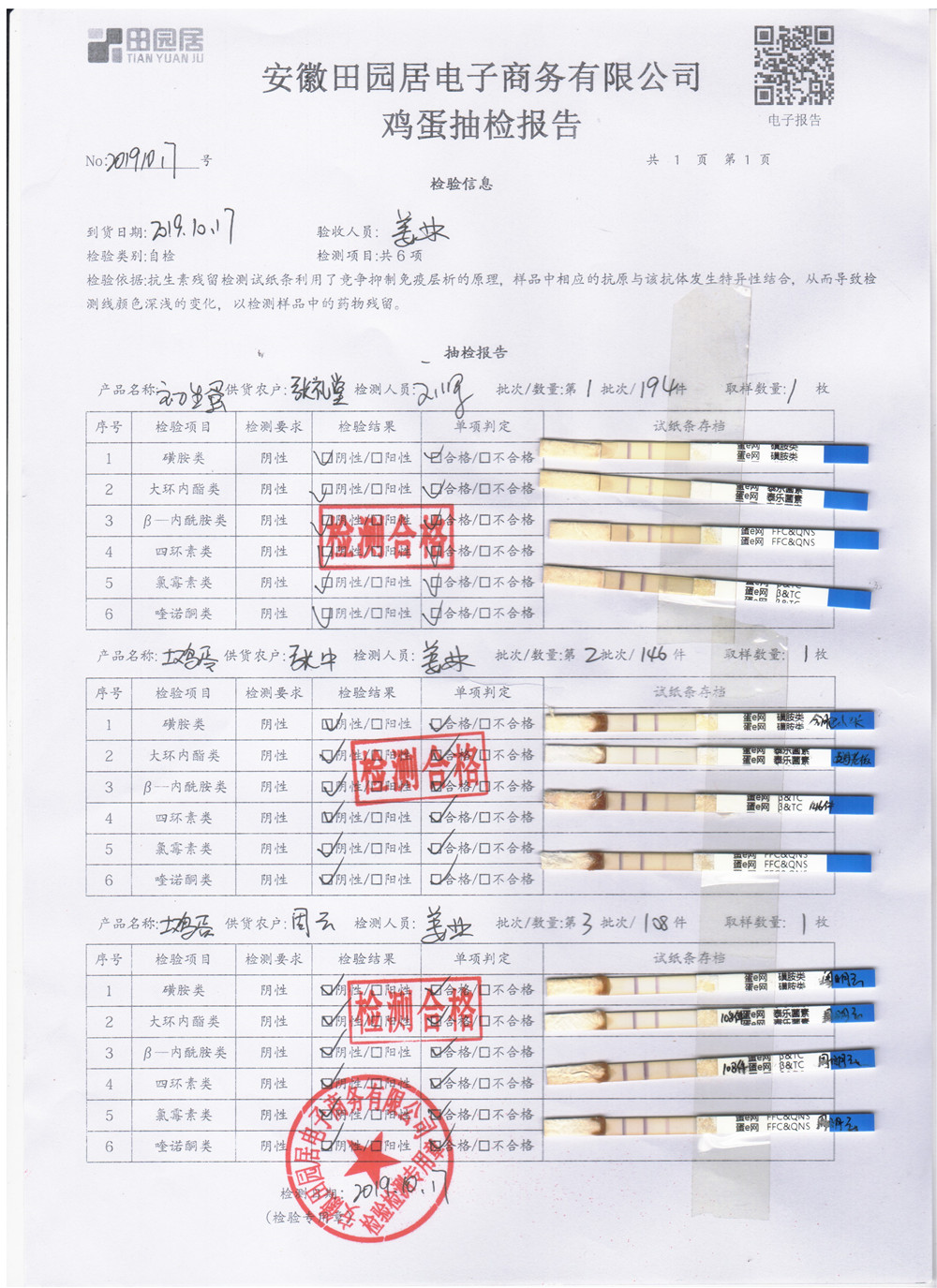 2019年10月17日雞蛋自檢報告