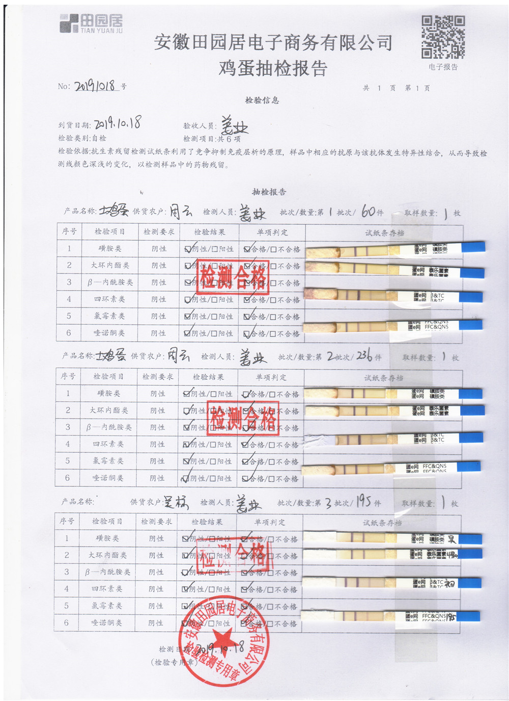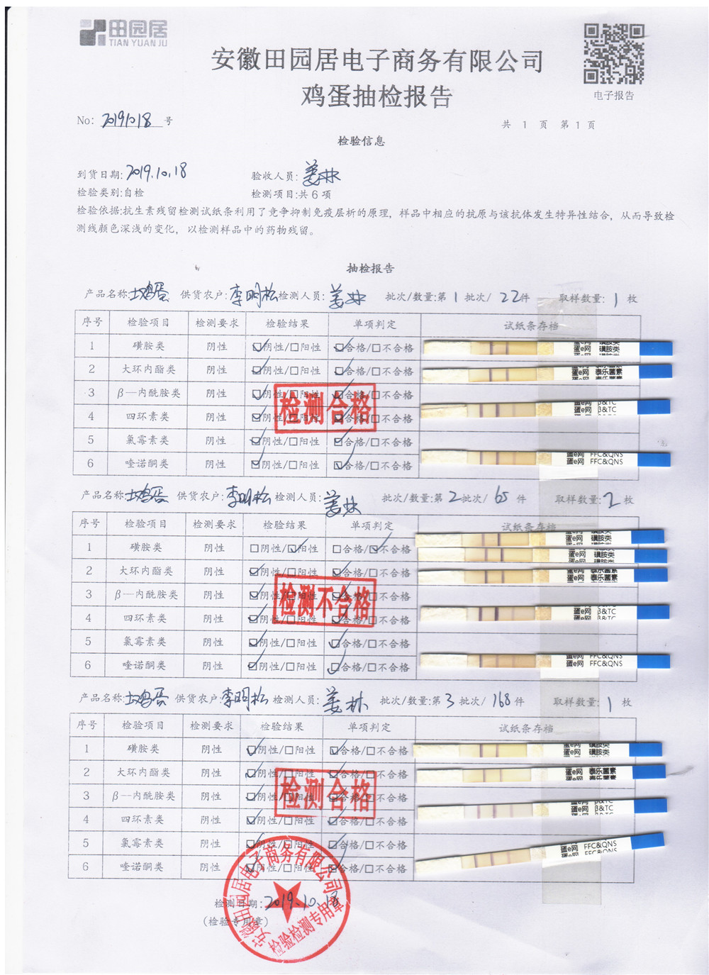 2019年10月18日雞蛋自檢報告