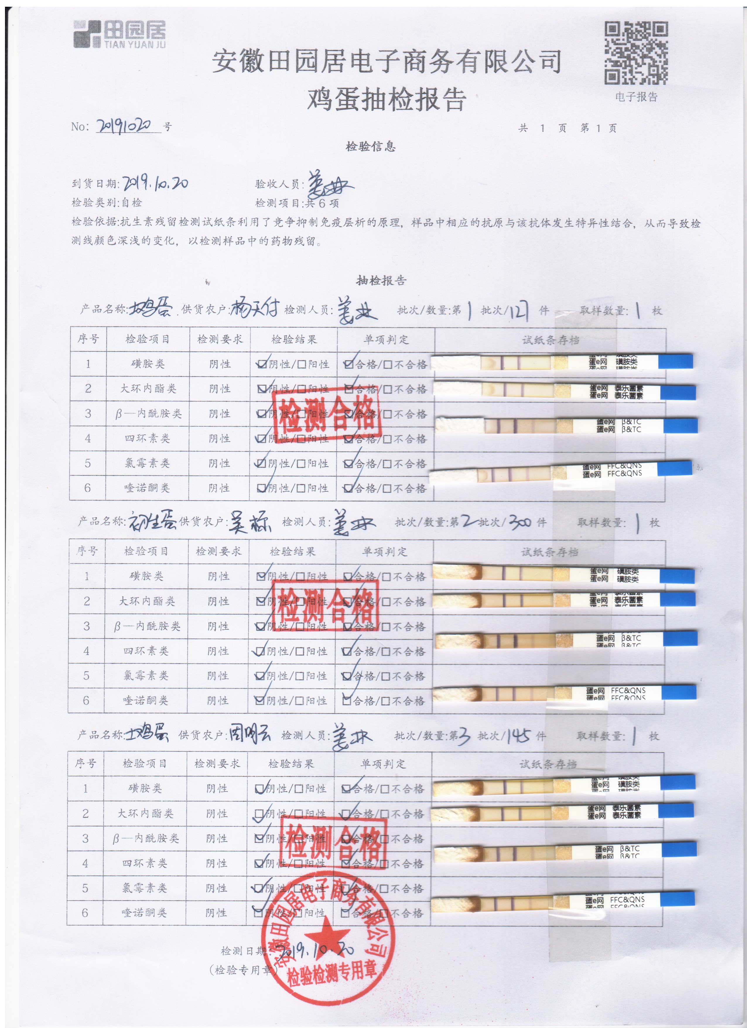 2019年10月21日鮮雞蛋檢測報告