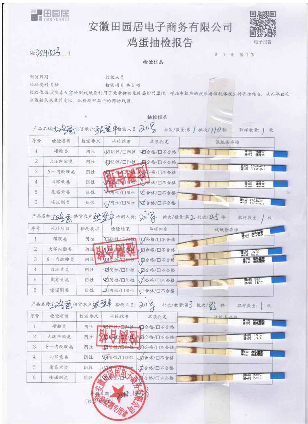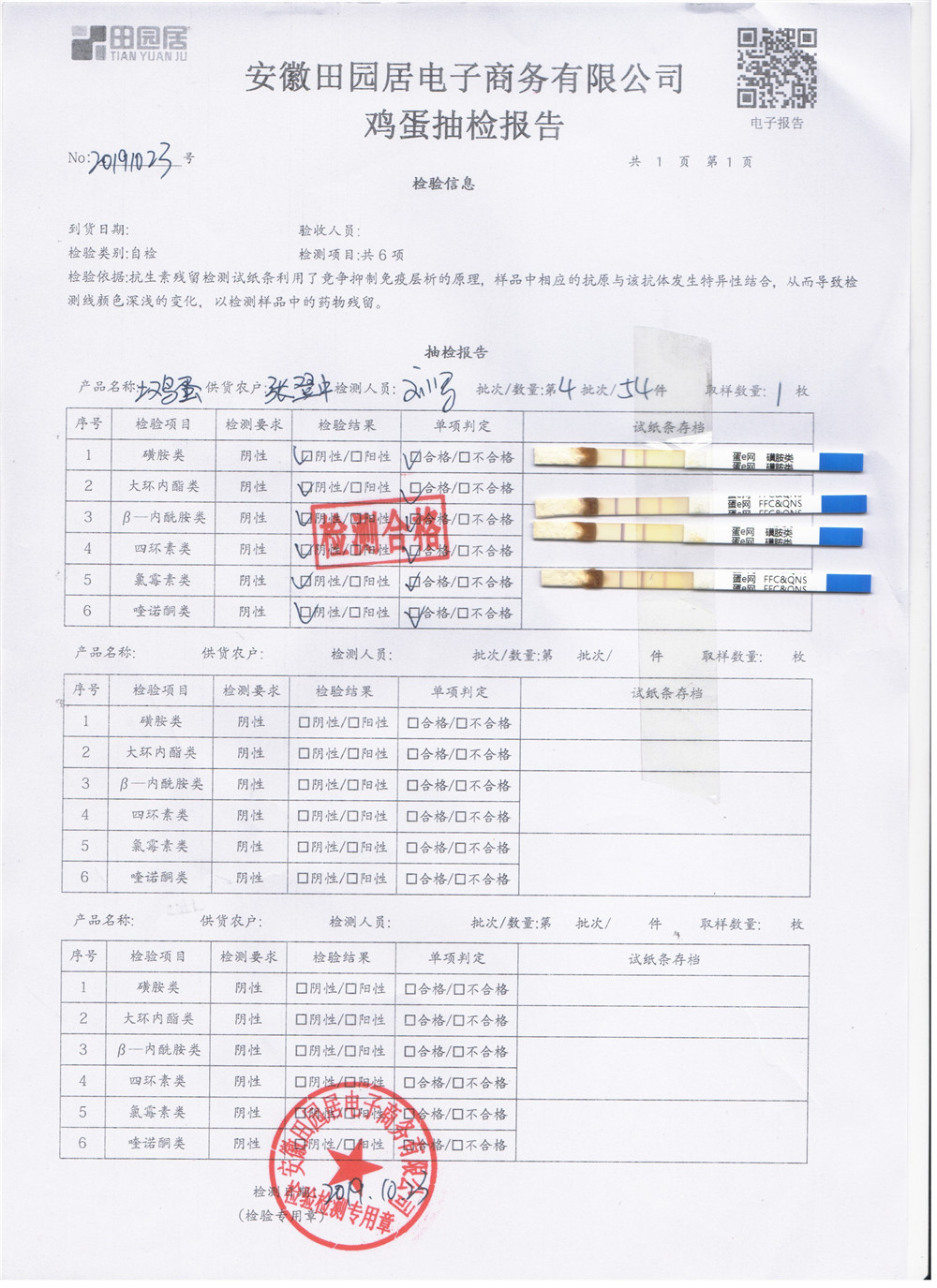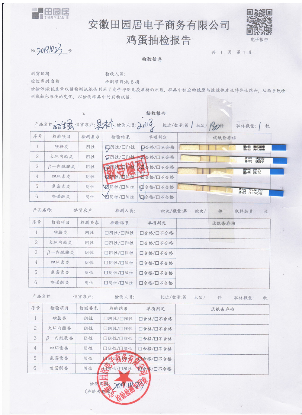 2019年10月23日鮮雞蛋檢測報告